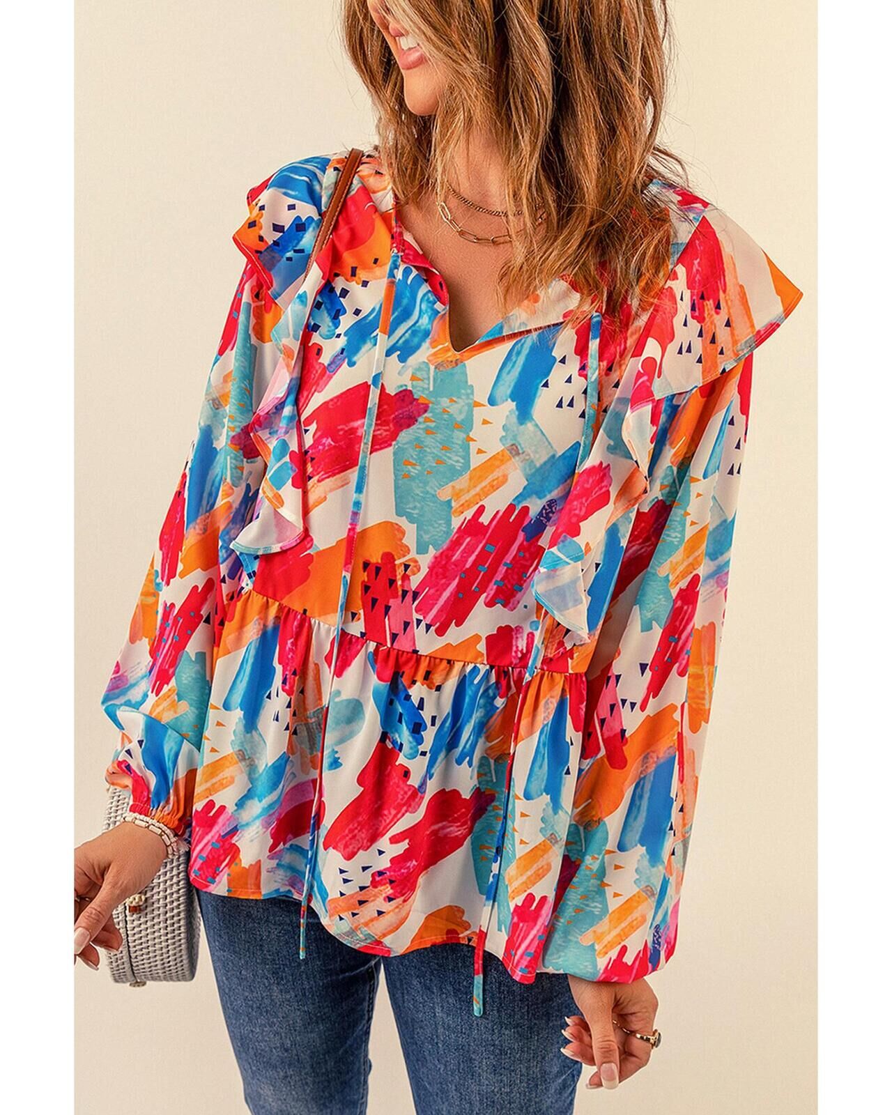 Azura Exchange Paint Print Ruffled Detail Loose Blouse