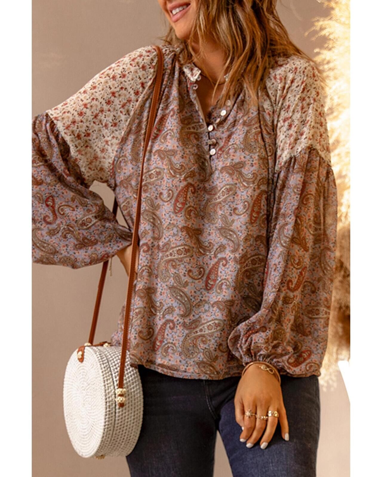 Azura Exchange Paisley Pattern Floral Patch Blouse