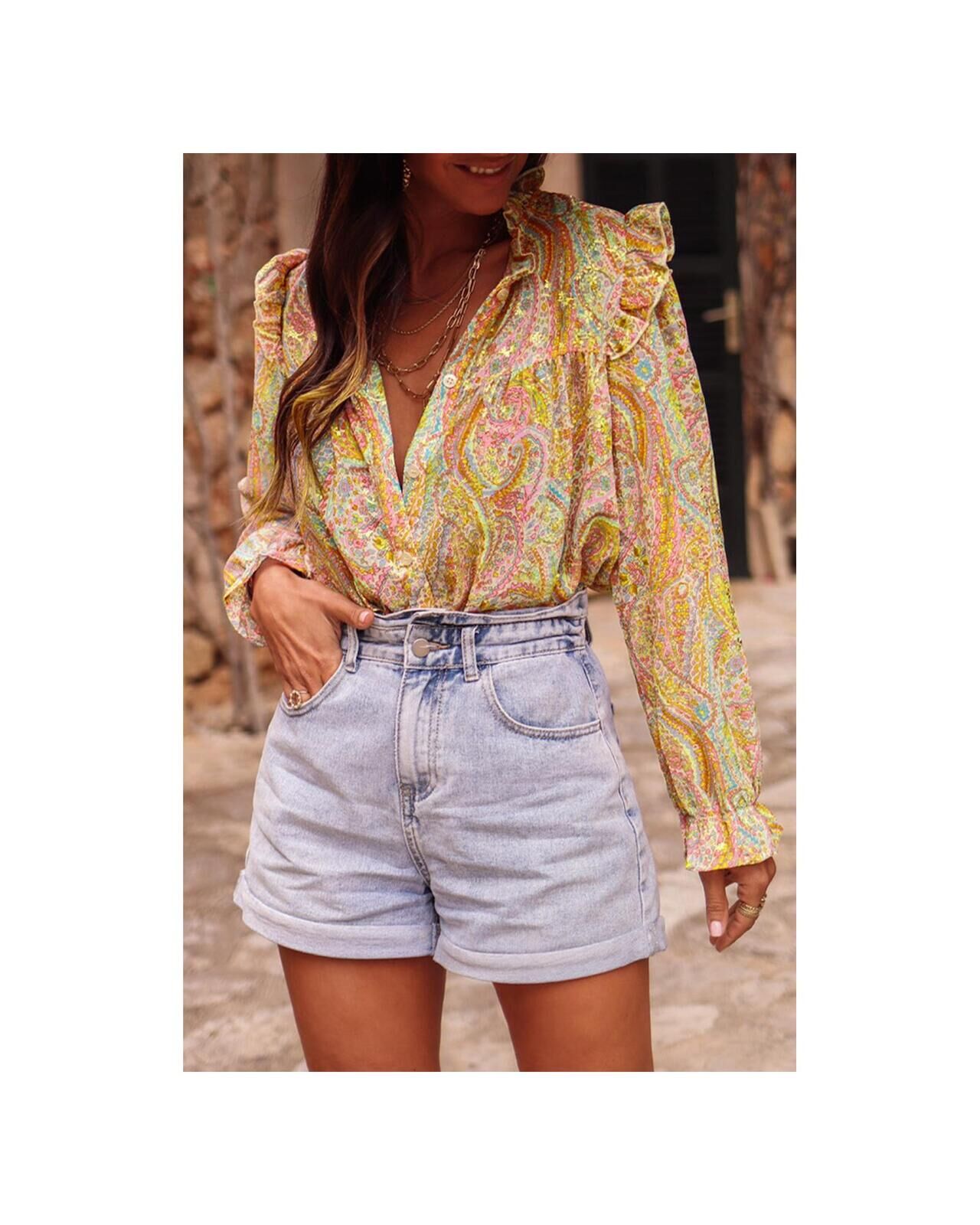 Azura Exchange Paisley Print Ruffled Trim Boho Shirt