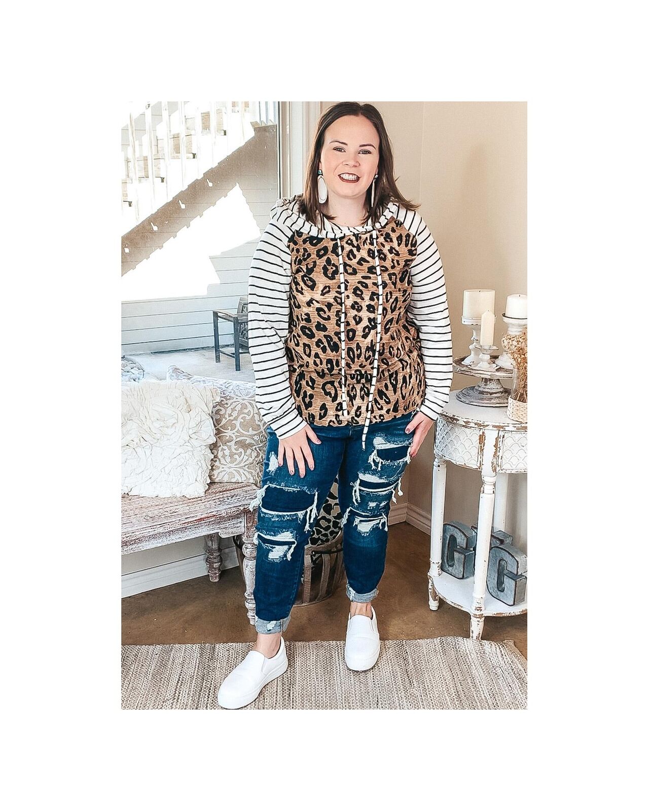 • Stylish and comfortable Striped Patchwork Pullover Hoodie