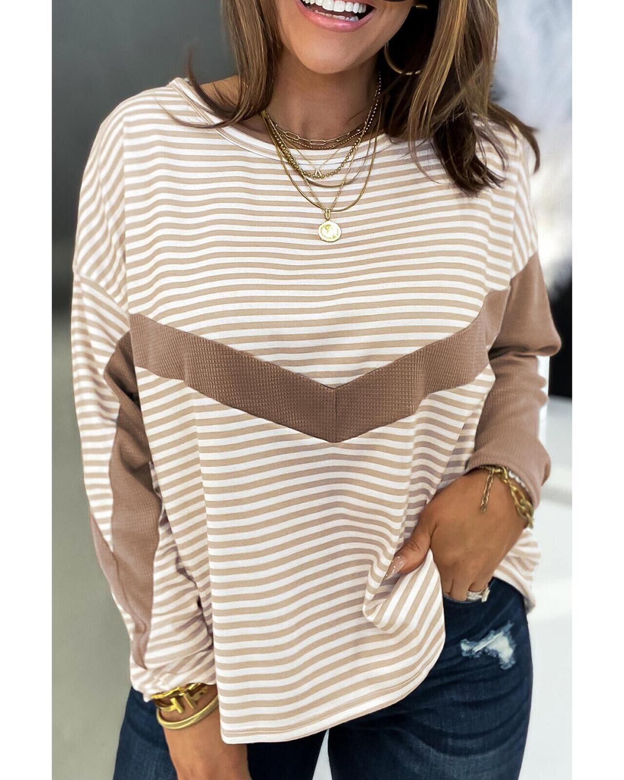 • Stylish and versatile Striped Patchwork Long Sleeve Top