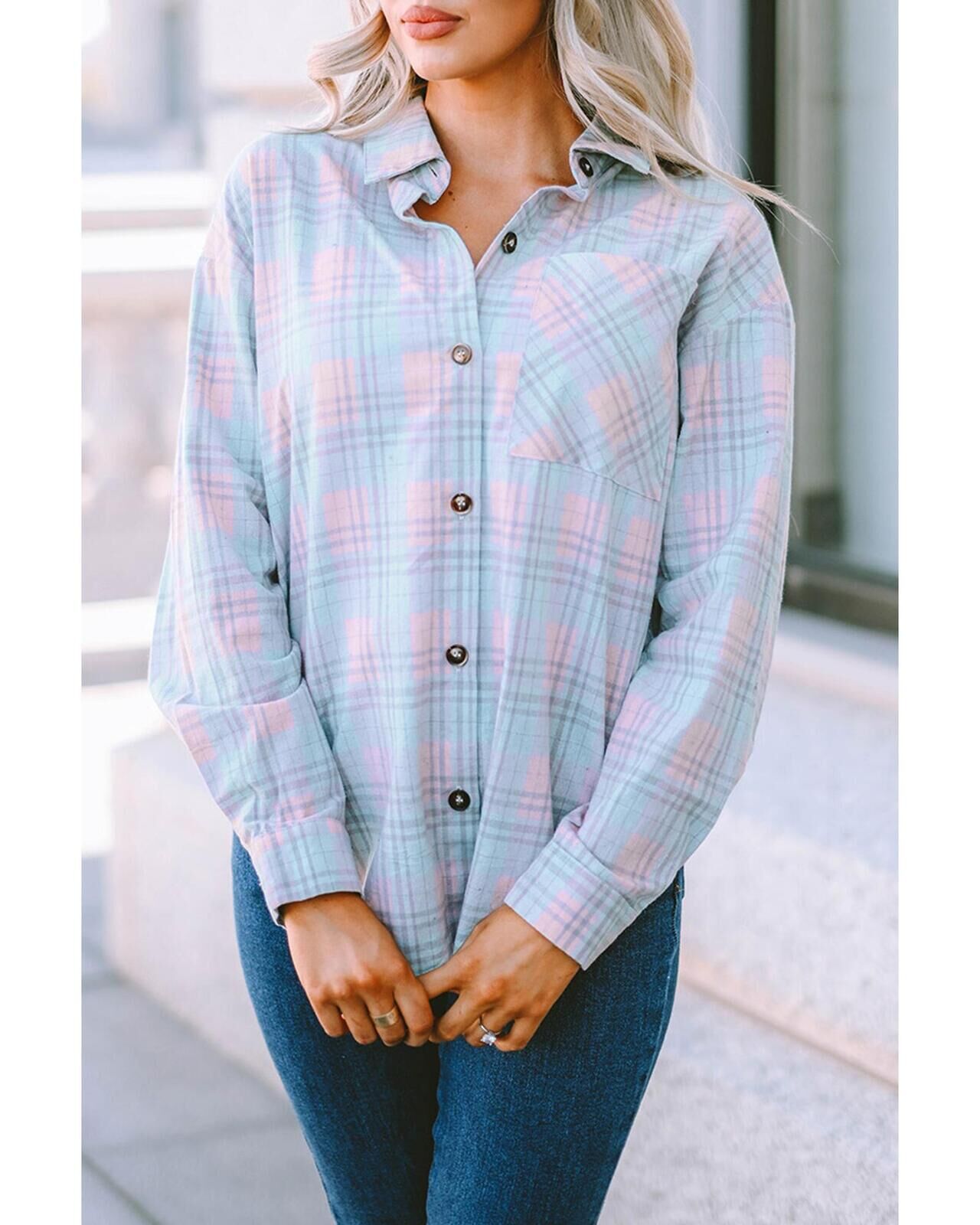 • Stylish and versatile Collared Neckline Plaid Pattern Long Sleeve Shirt