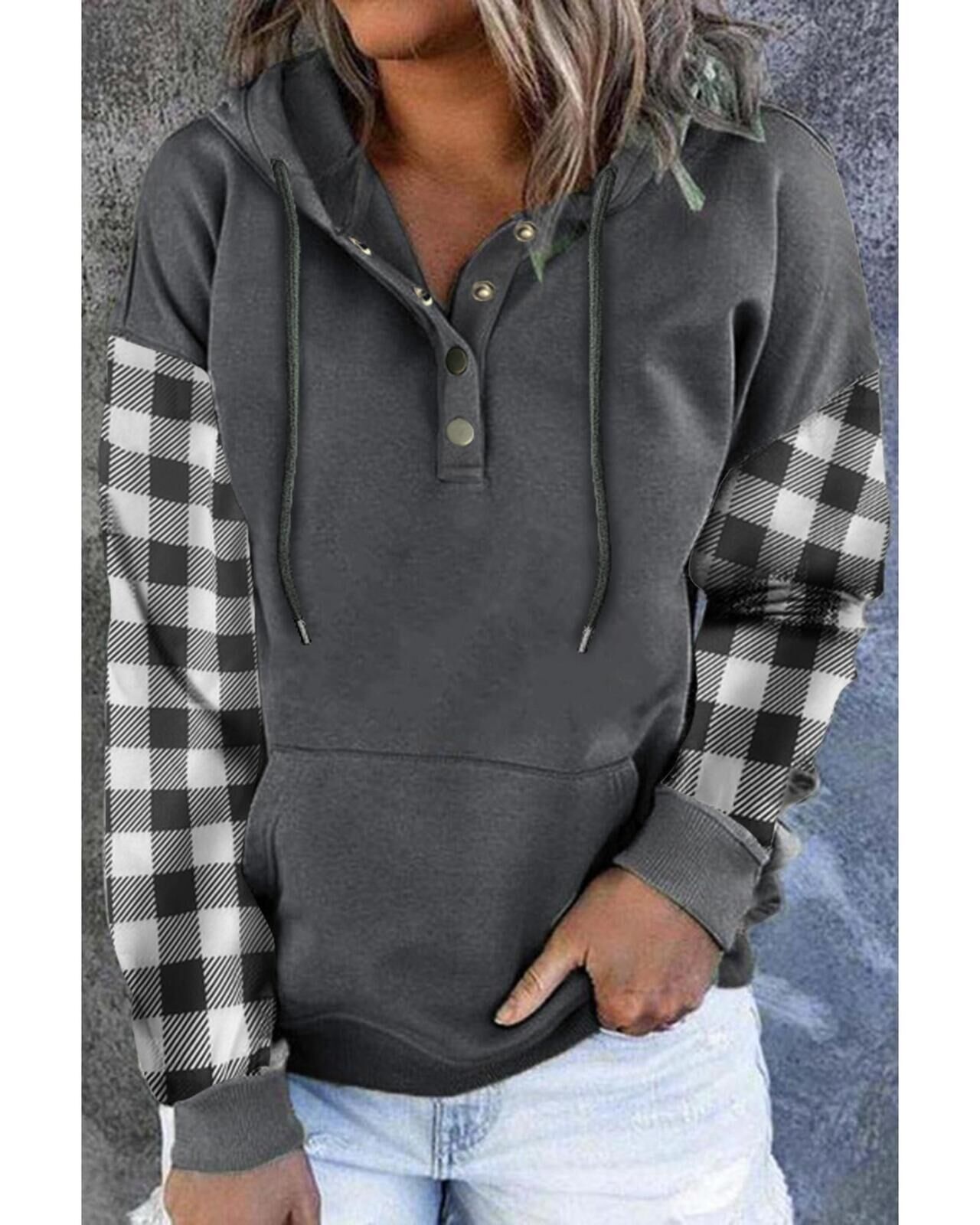 Azura Exchange Plaid Snap Button Pullover Hoodie with Pocket