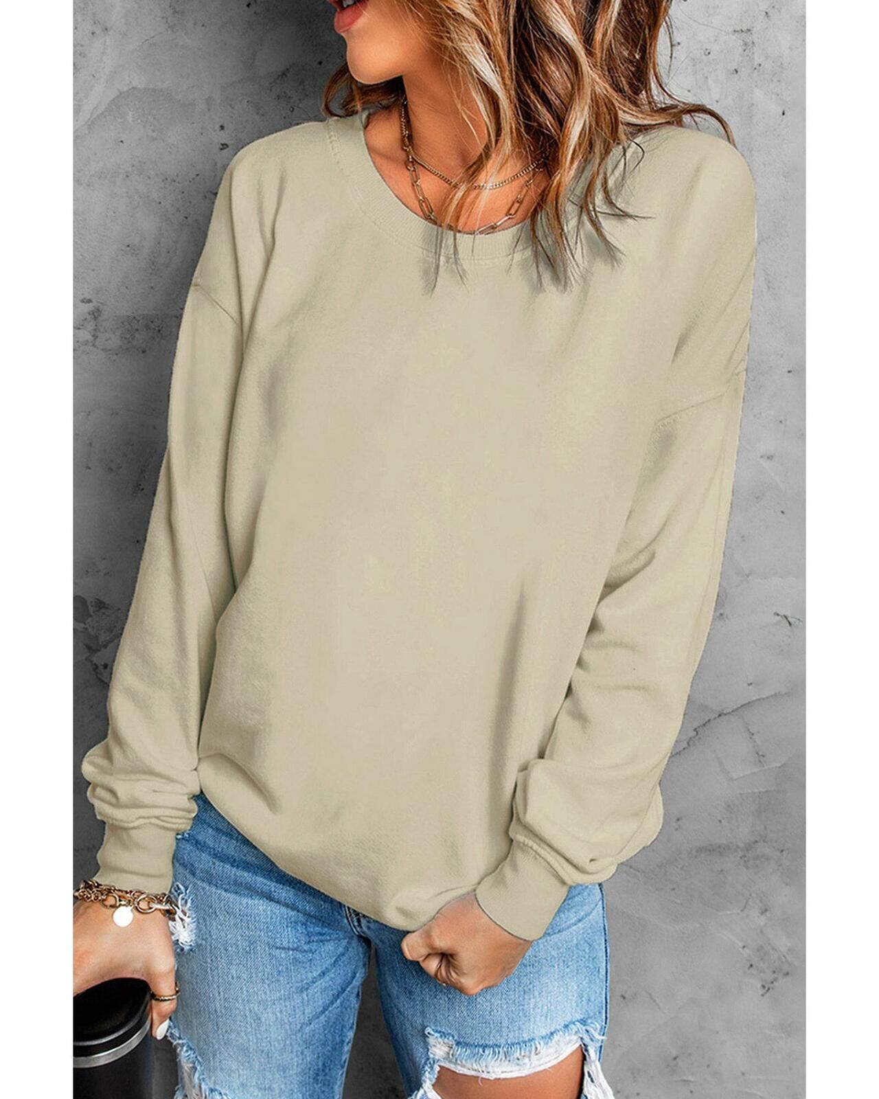 • Khaki Plain Crew Neck Pullover Sweatshirt