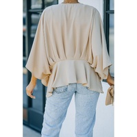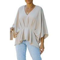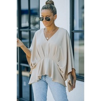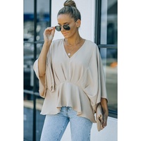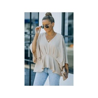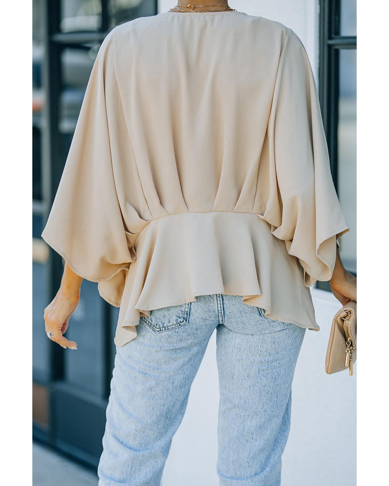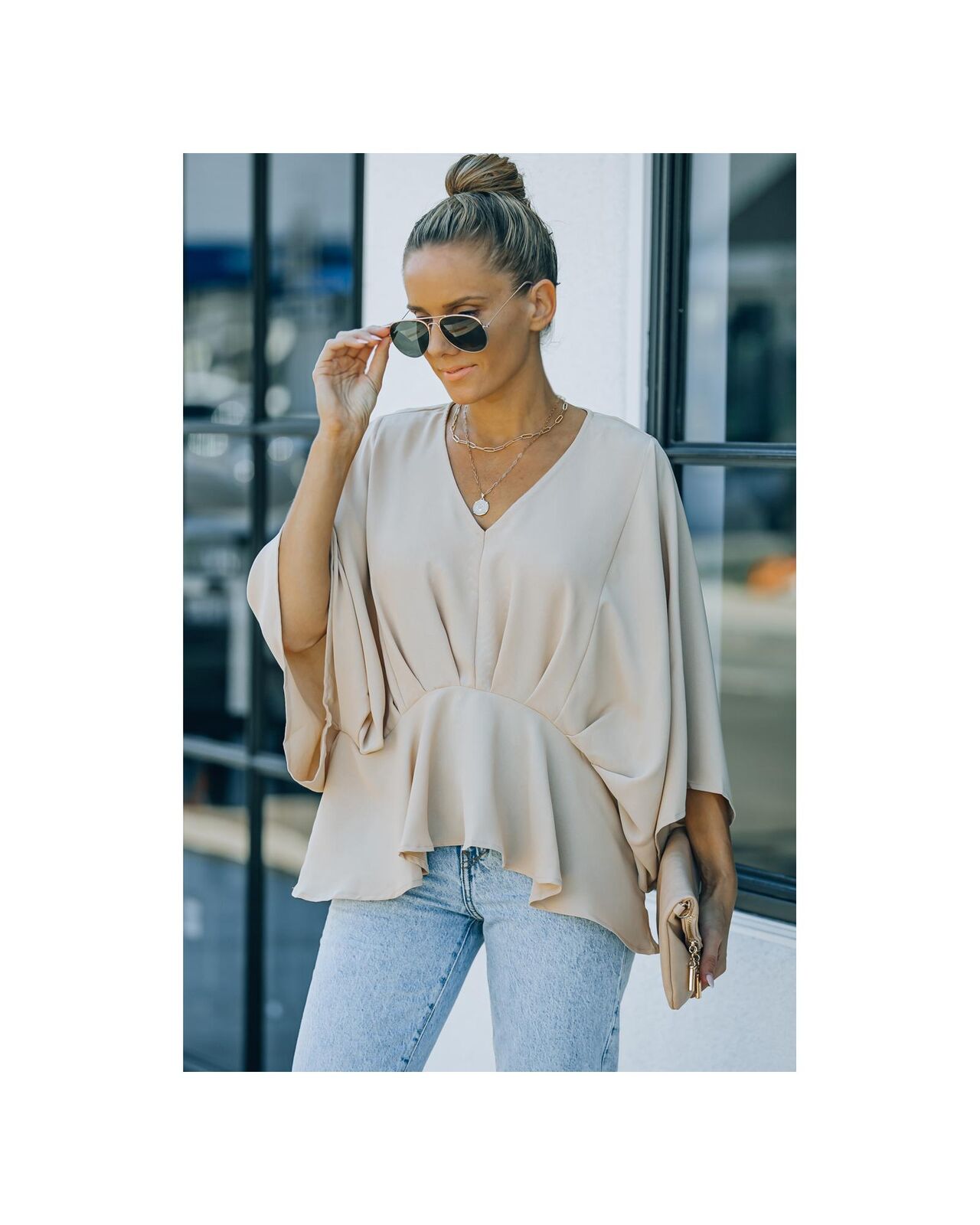 Azura Exchange Pleated Batwing Sleeve V Neck Blouse in 100% Polyester - M