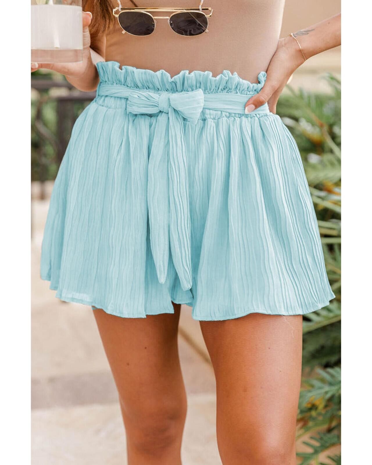 Azura Exchange Pleated Shorts with Ruffled Waist and Belt