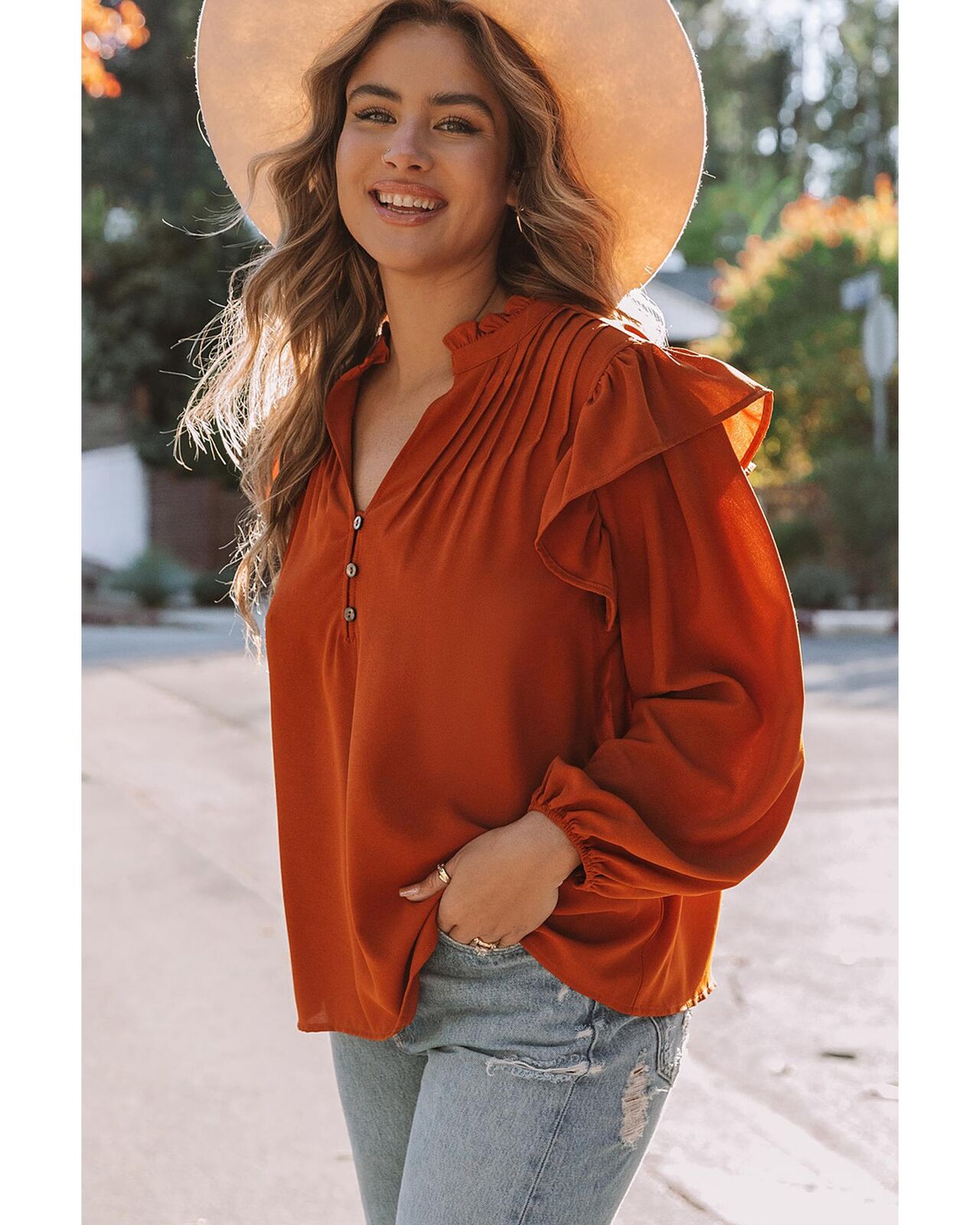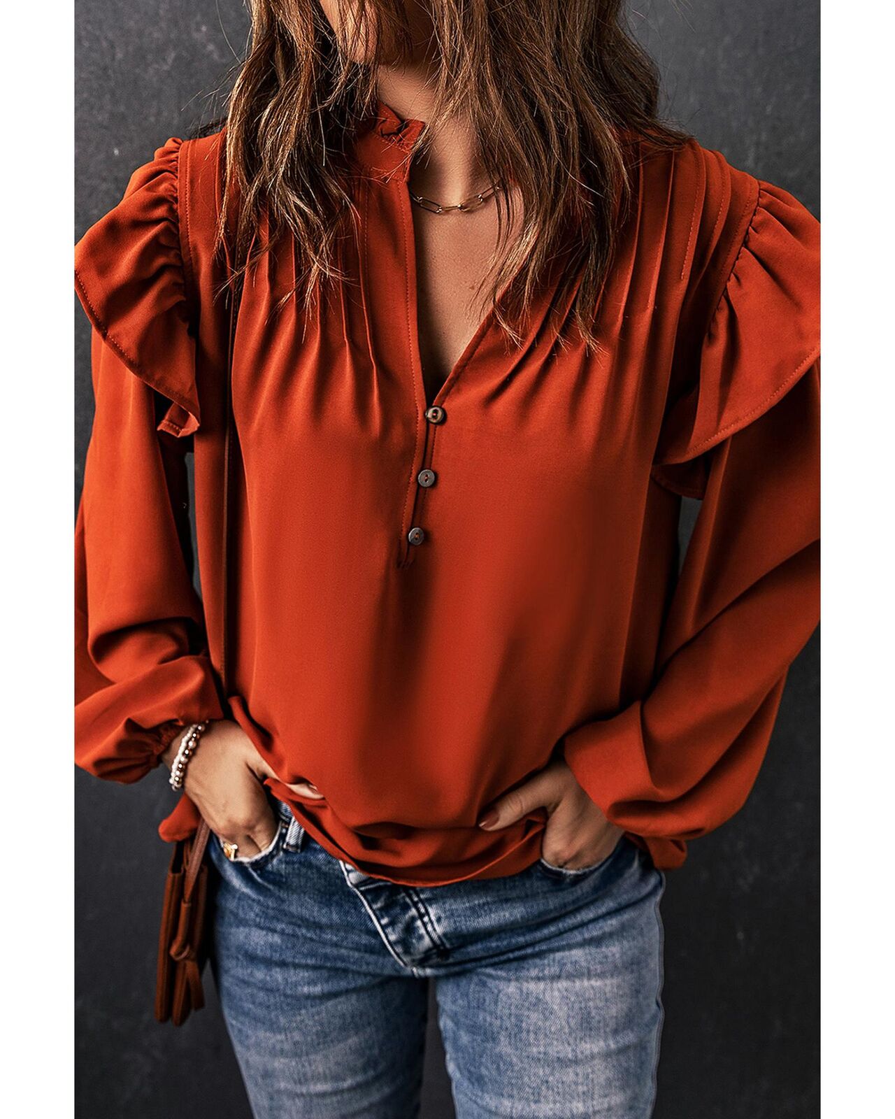 • Buttoned V-neckline