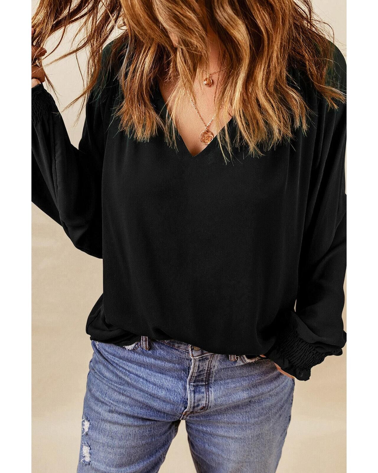 Azura Exchange Pleated V Neck Puffy Sleeve Blouse