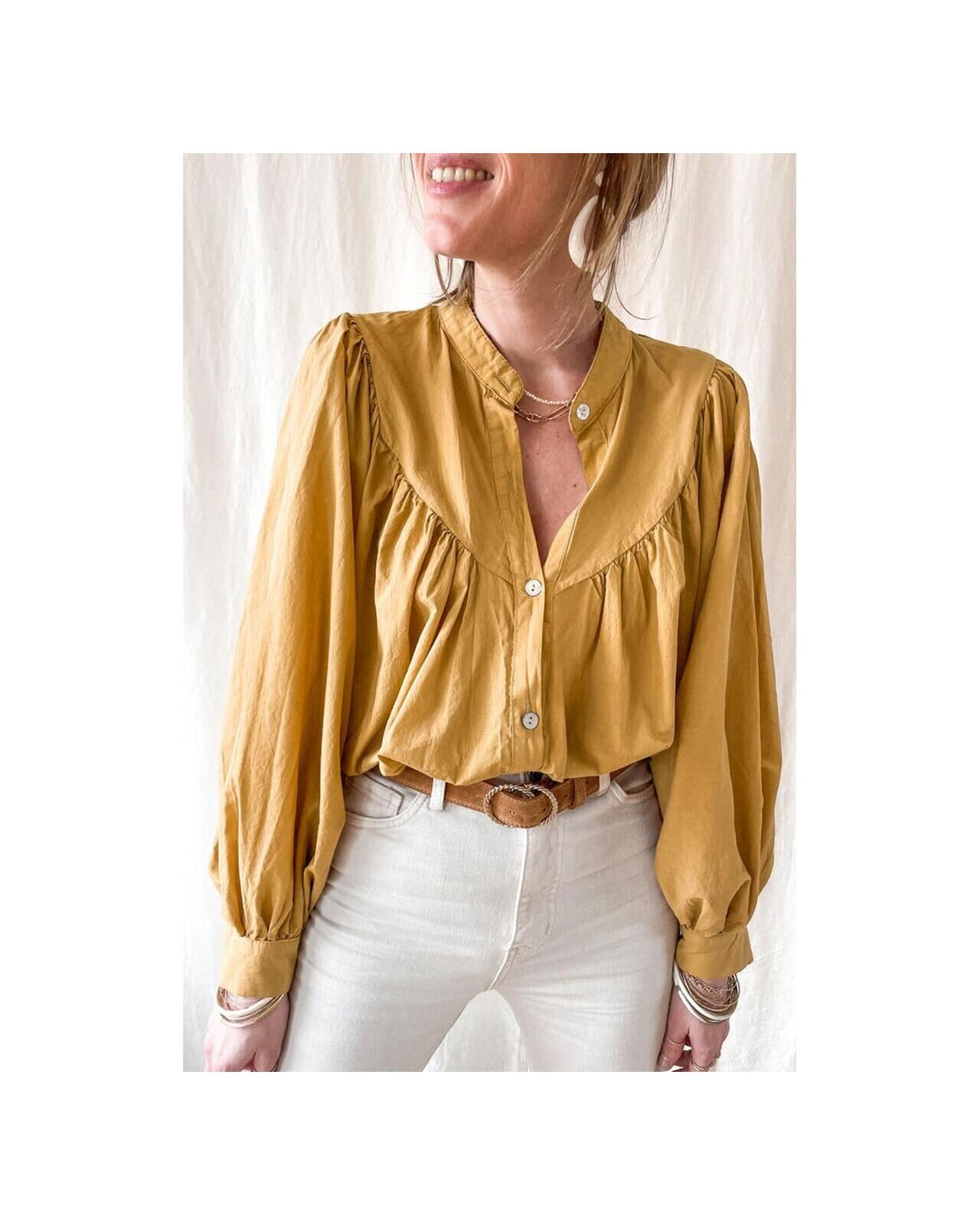 Azura Exchange Pleated Yellow Puff Sleeve Loose Shirt