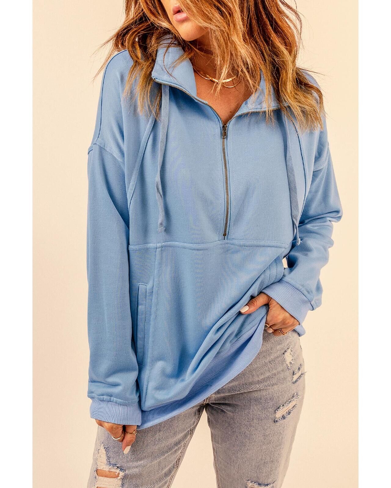 Azura Exchange Pocketed Half Zip Pullover Sky Blue Sweatshirt