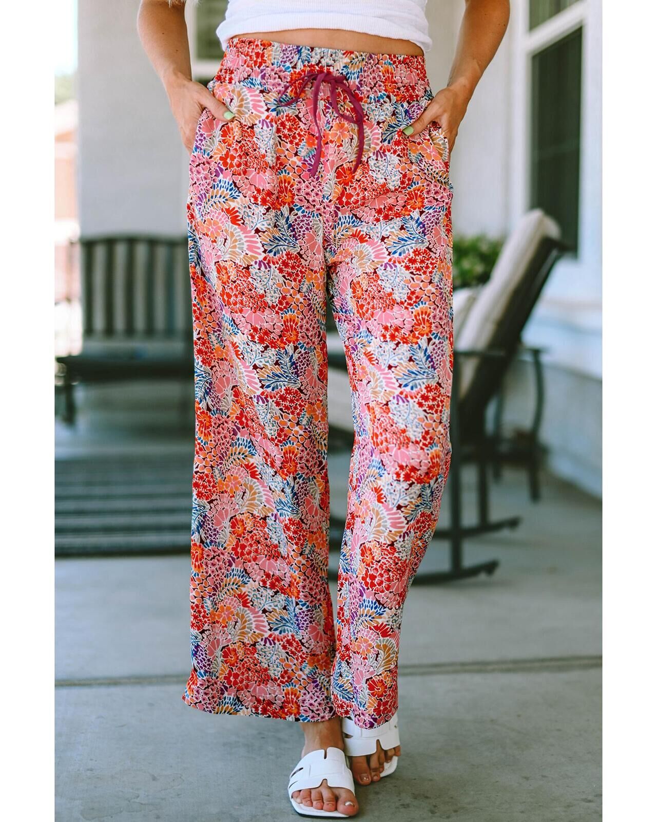 Azura Exchange Print Drawstring Smocked High Waist Pants
