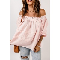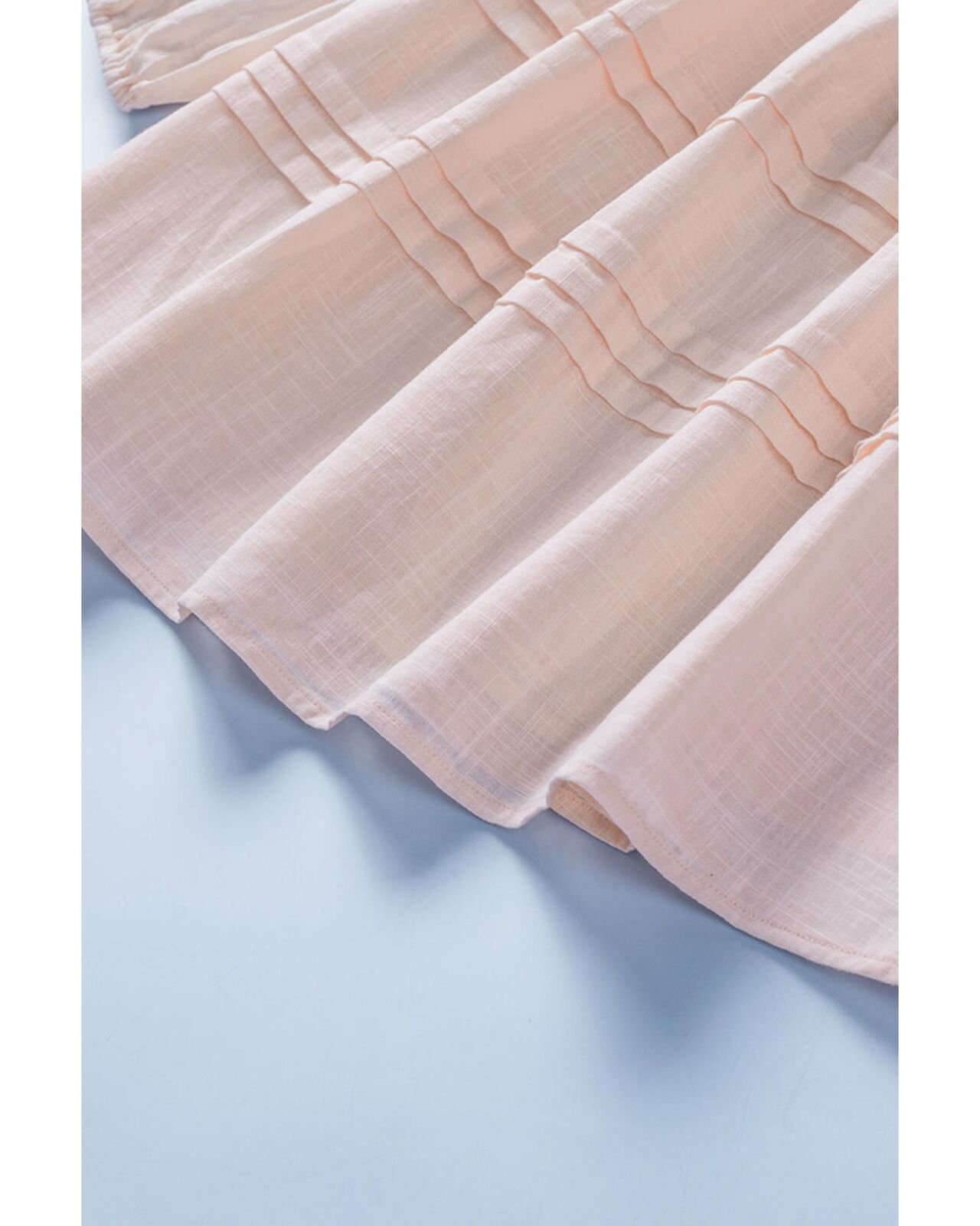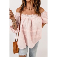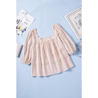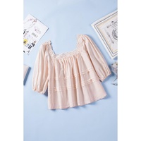 • Elegant Beige Puff Sleeve Eyelet Babydoll Blouse