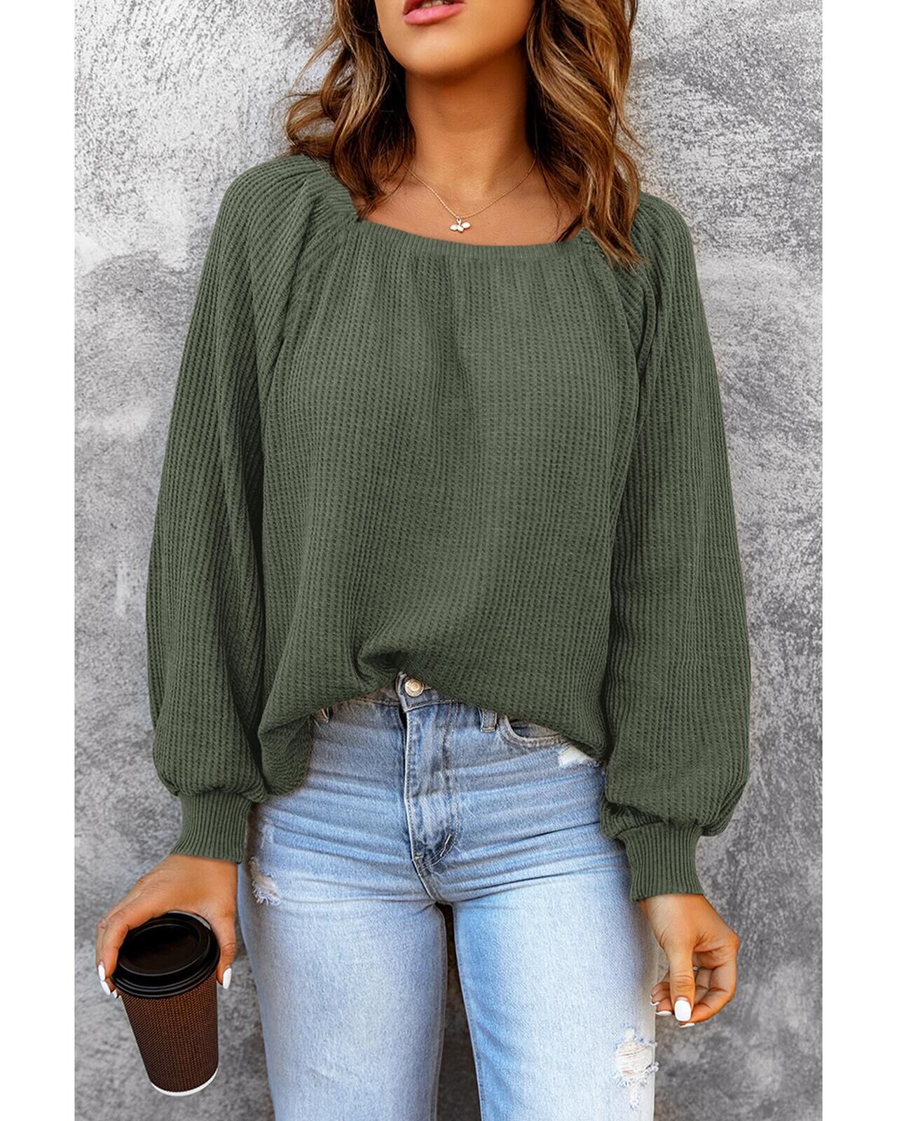 Azura Exchange Puff Sleeve Waffle Knit Top