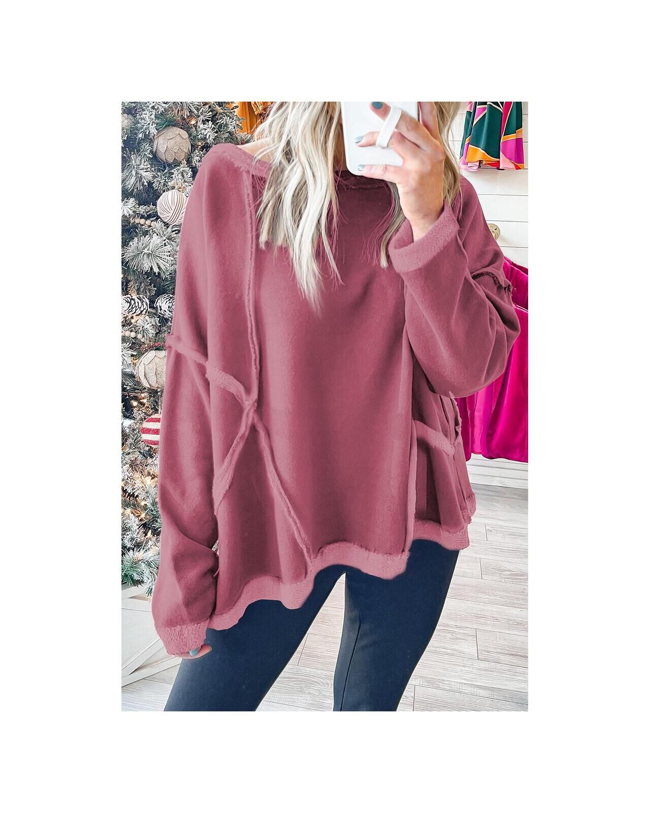 • Stylish and simple Exposed Seam Drop Shoulder Raw Hem Oversized Sweatshirt