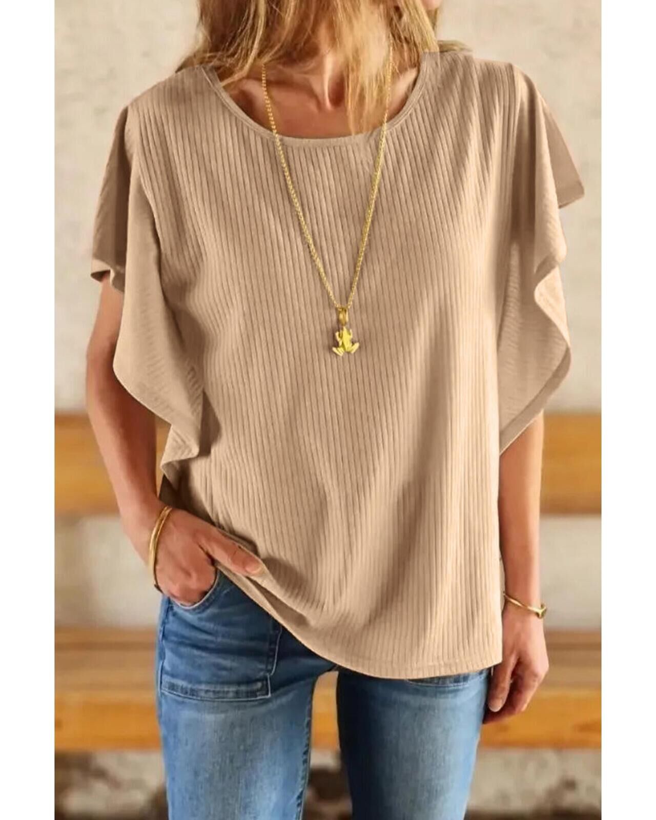 Azura Exchange Ribbed Knit Ruffled Top
