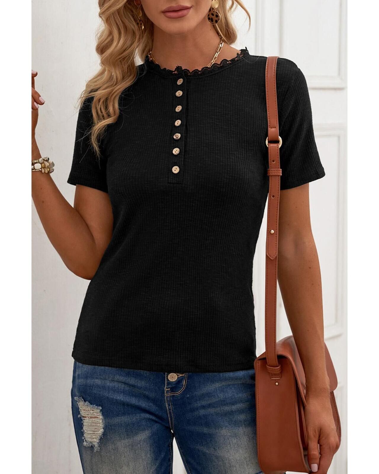 • Luxurious buttoned ribbed knit short sleeve top