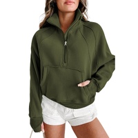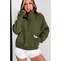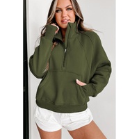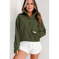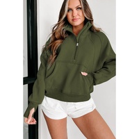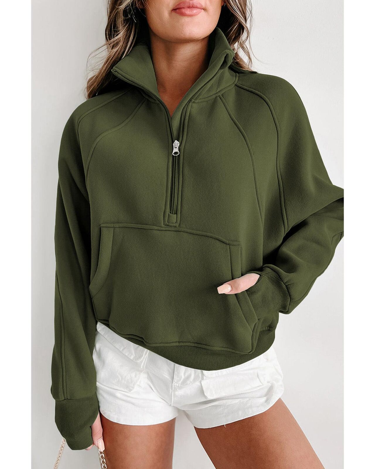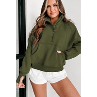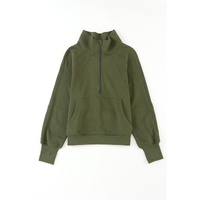 Azura Exchange Ribbed Thumbhole Sleeve Sweatshirt with Stand Collar and Zip Closure - XL