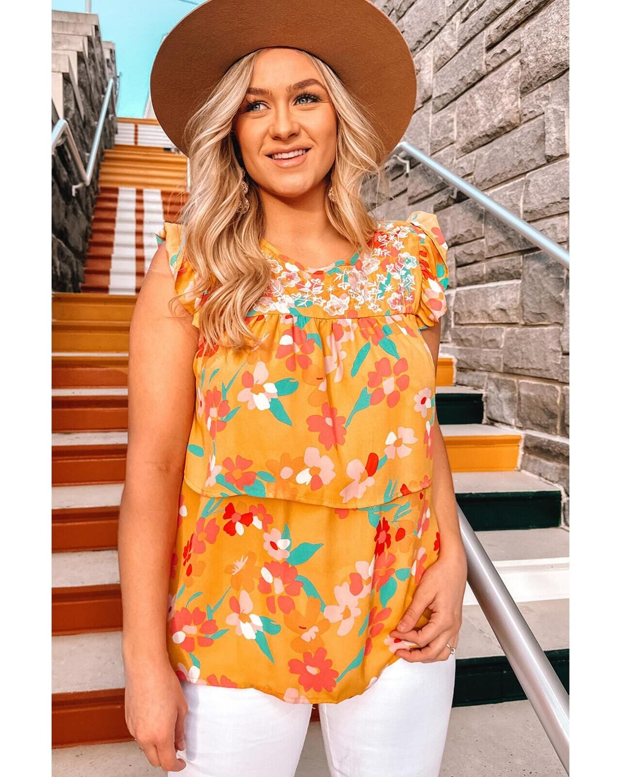 Azura Exchange Ruffle Cap Sleeve Floral Print Blouse
