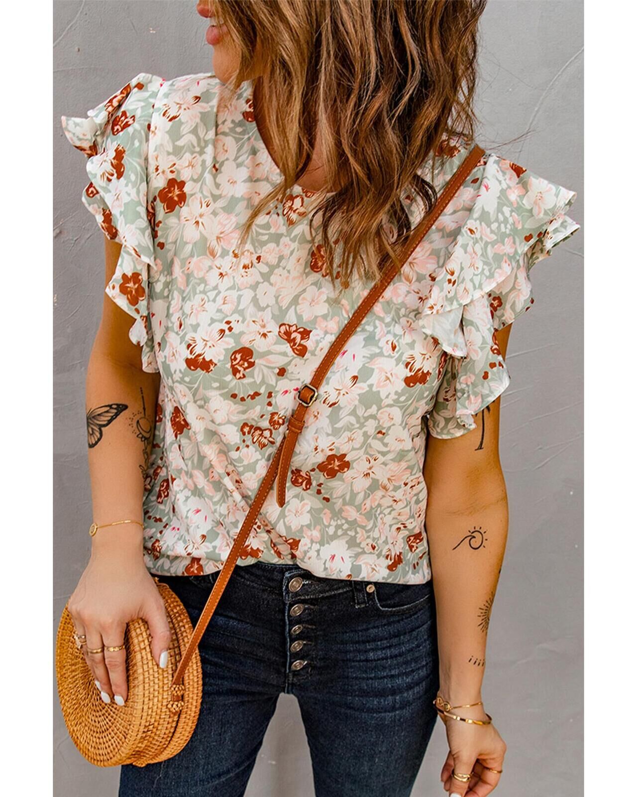• Stylish and feminine Floral Ruffle Short Sleeve Tee