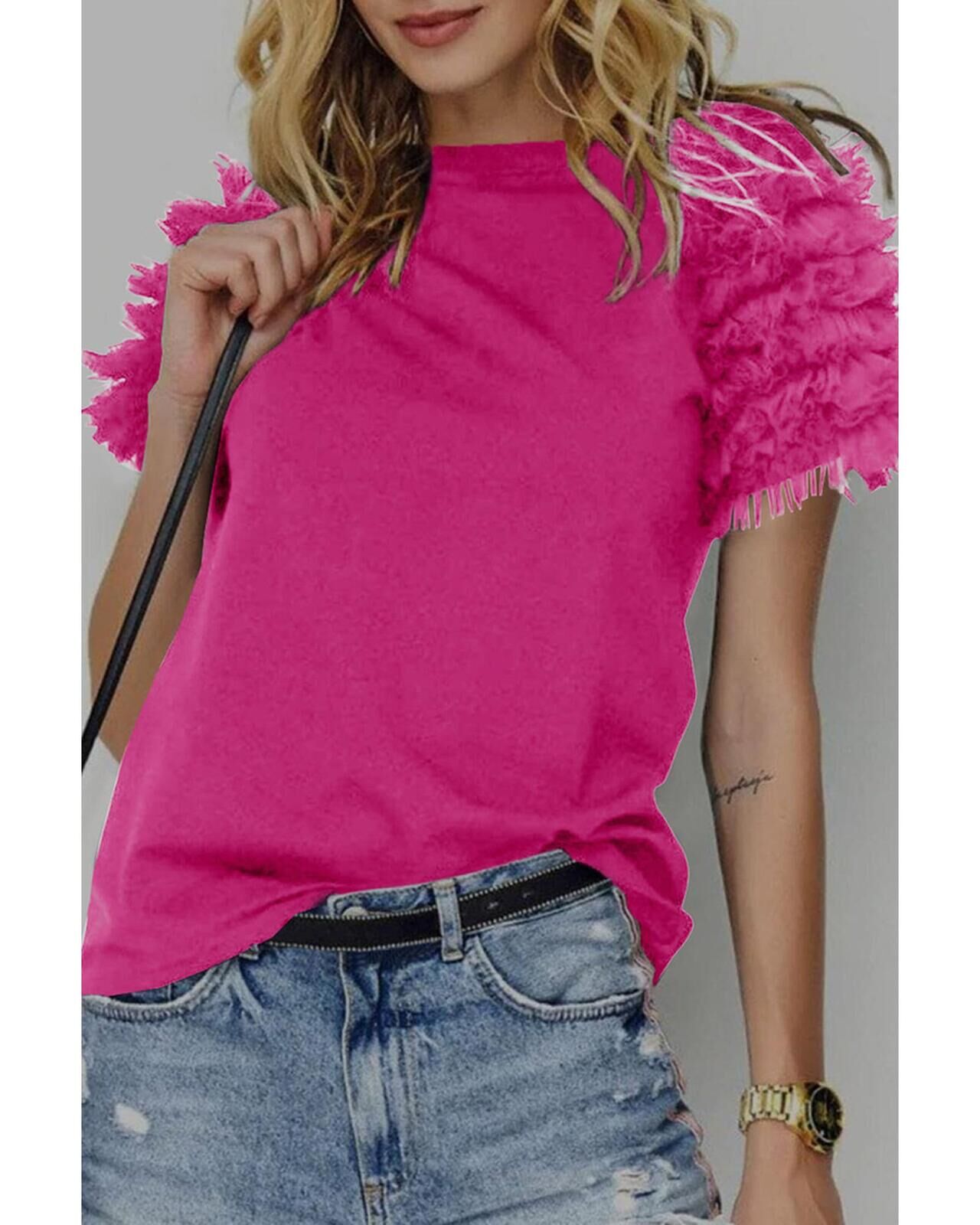 • Stylish and contemporary Mesh Ruffled Short Sleeve T-Shirt