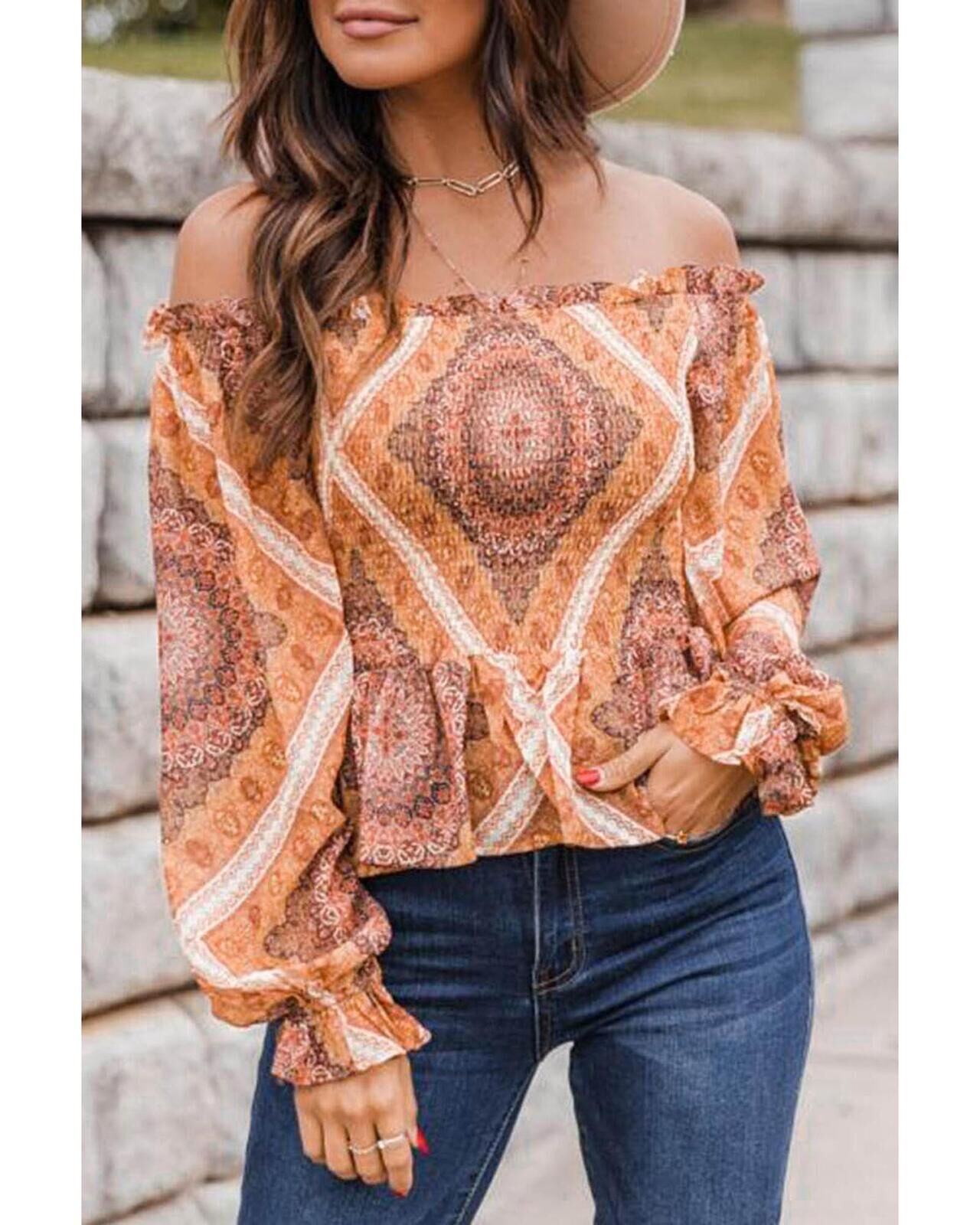 Azura Exchange Ruffled Smocked Off Shoulder Blouse