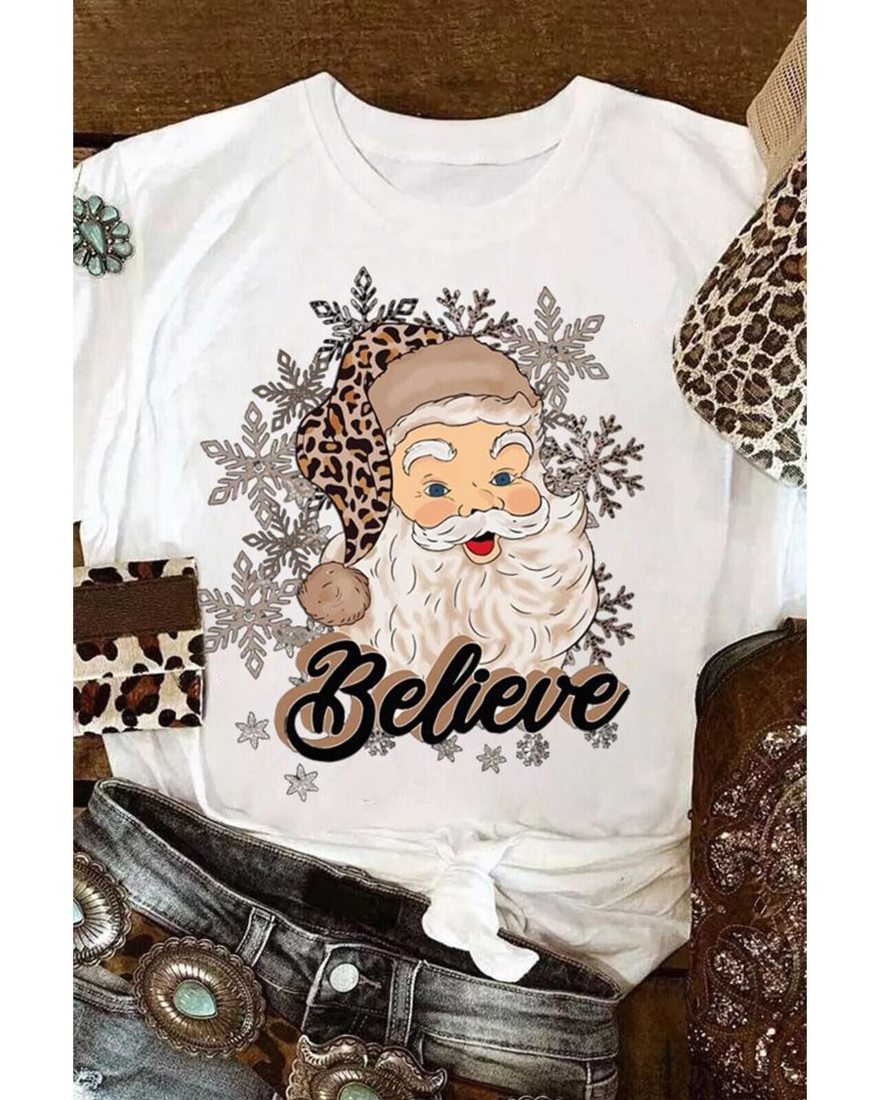 Azura Exchange Santa Claus Snowflake Print Crew Neck T-Shirt