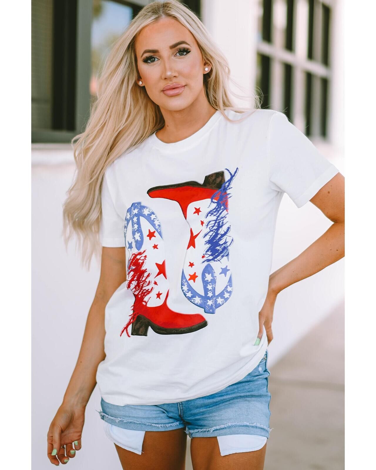 Azura Exchange Sequin Graphic Tee with American Flag Boots Pattern
