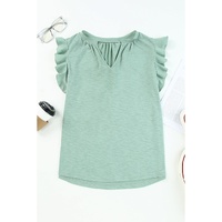 Azura Exchange Solid V Neck Butterfly Sleeve Blouse - M