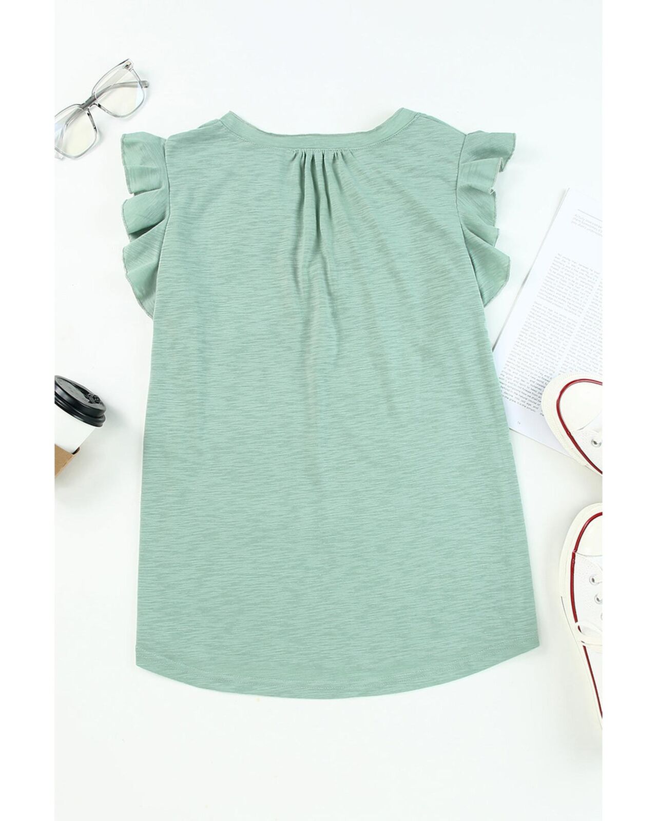 • Stylish and versatile Casual Solid V Neck Butterfly Sleeve Blouse