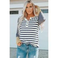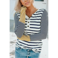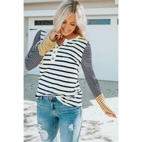 • Long sleeve stripe button henley top