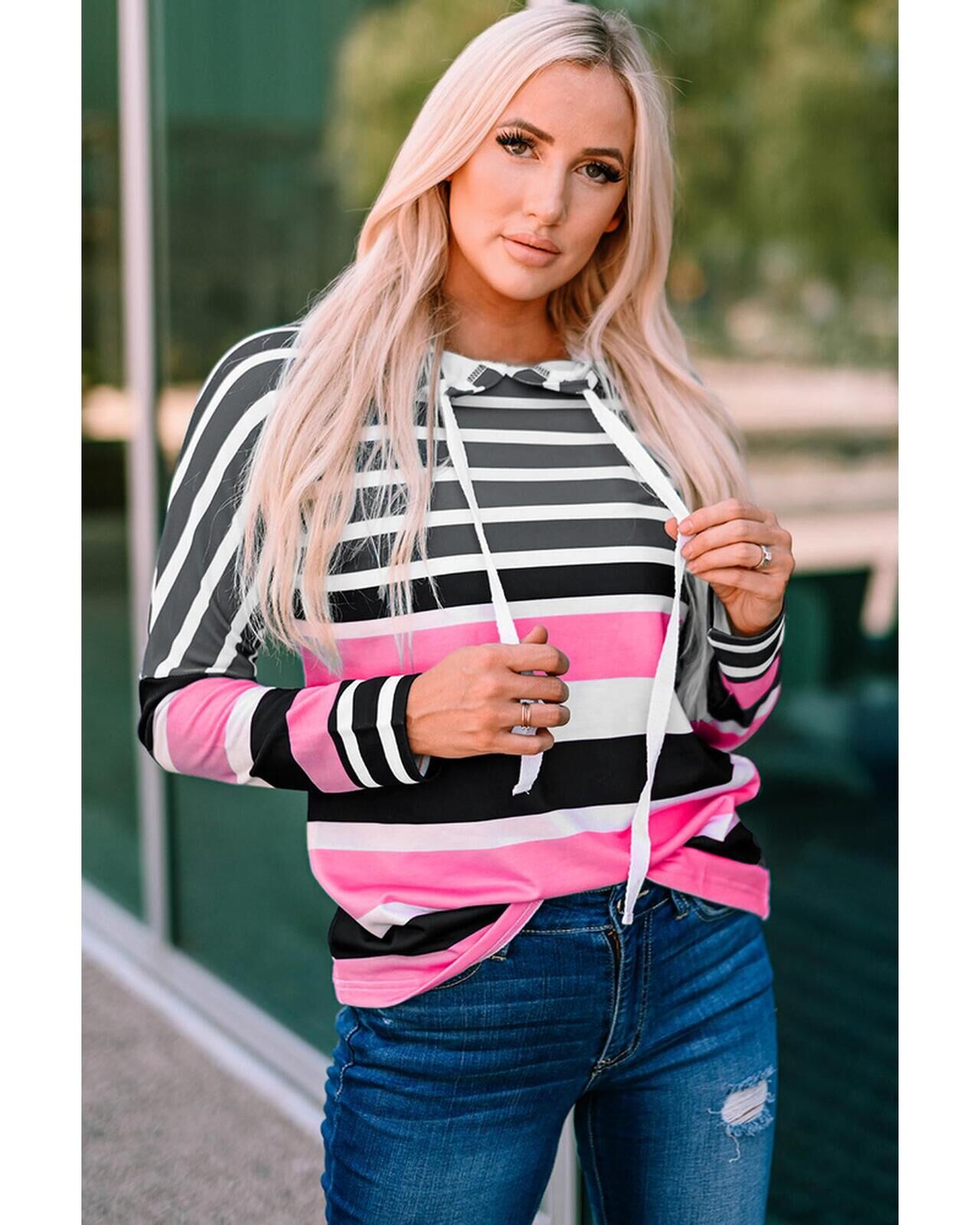 Azura Exchange Striped Drawstring Hoodie