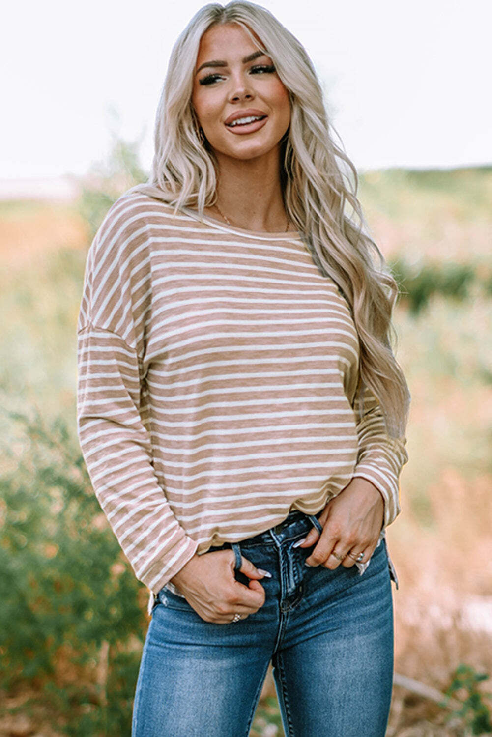 • Stylish and trendy Striped Print Drop Shoulder Long Sleeve Top