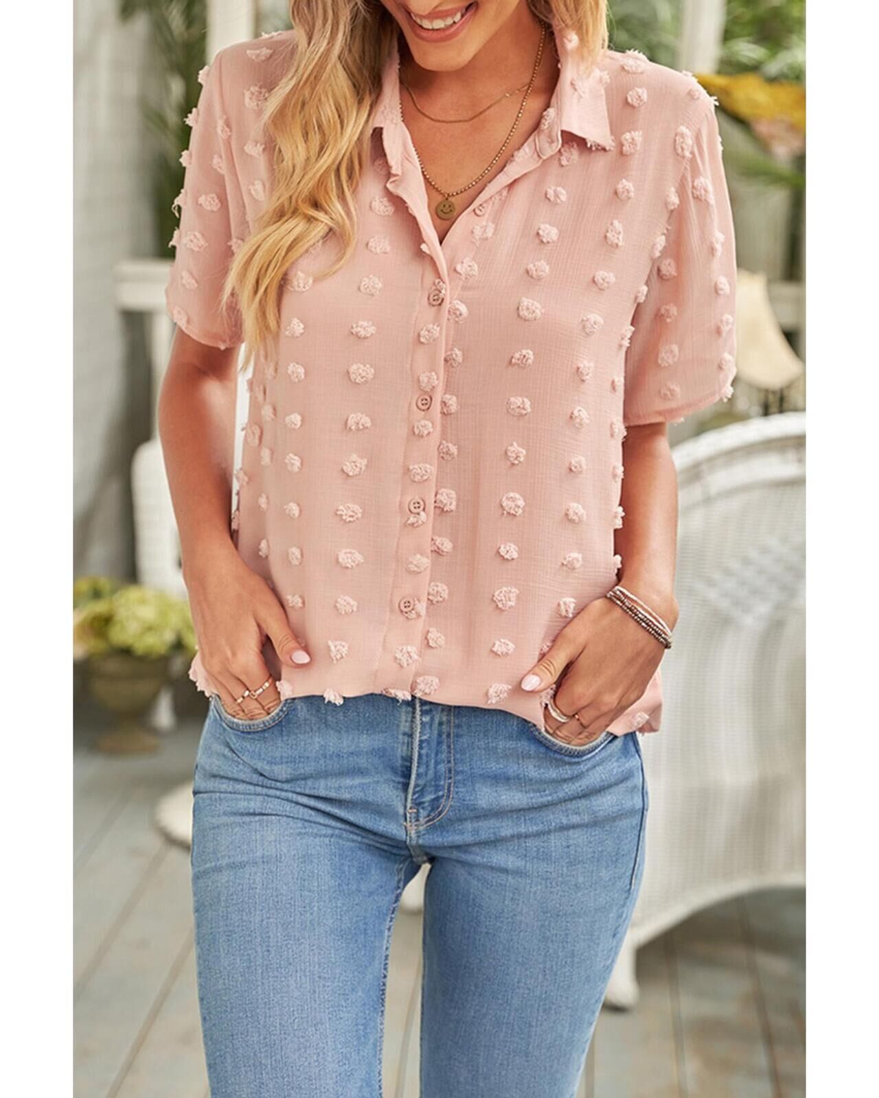 Azura Exchange Swiss Dot Buttoned Short Sleeve Shirt