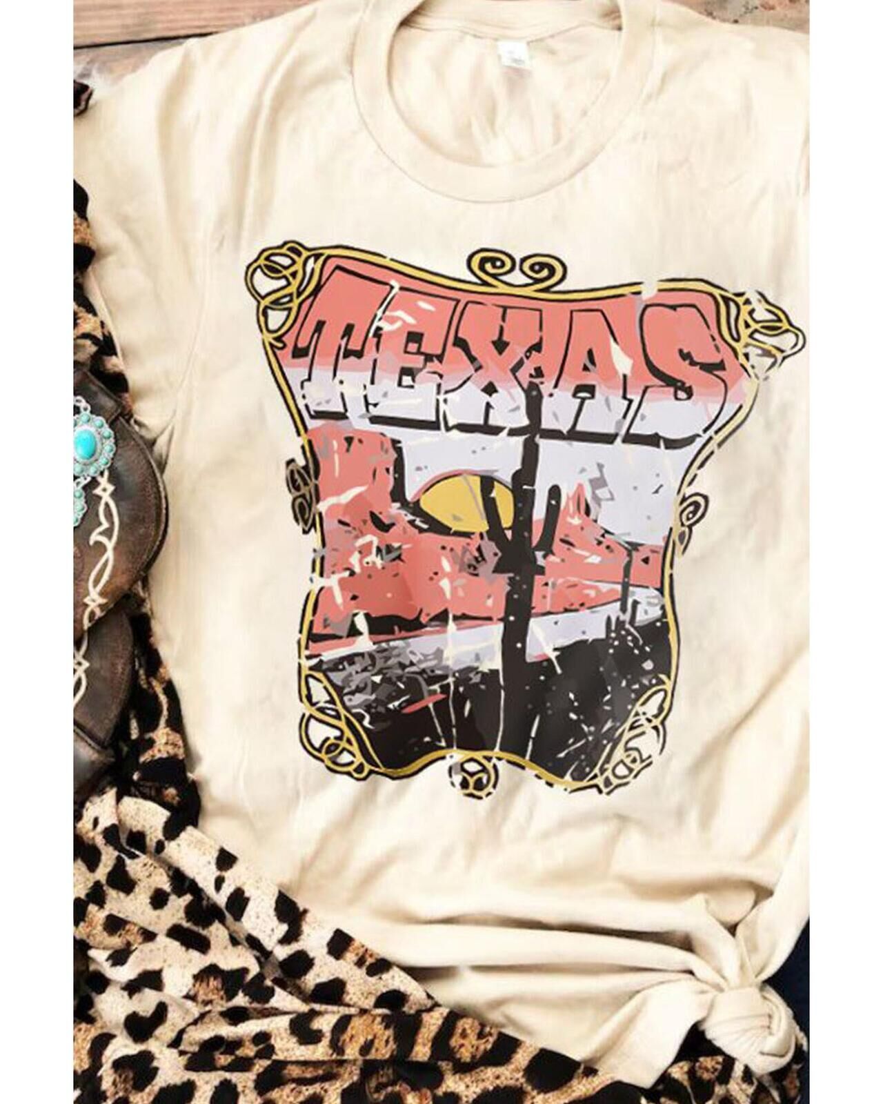 Azura Exchange TEXAS Graphic Print Crew Neck T-Shirt in Khaki