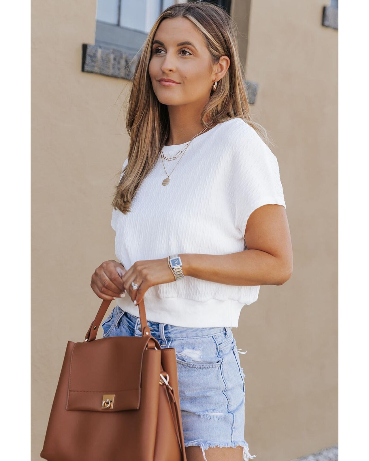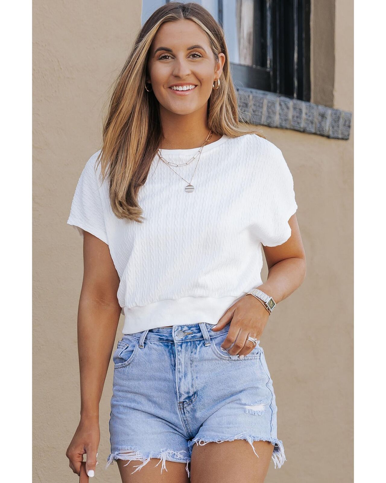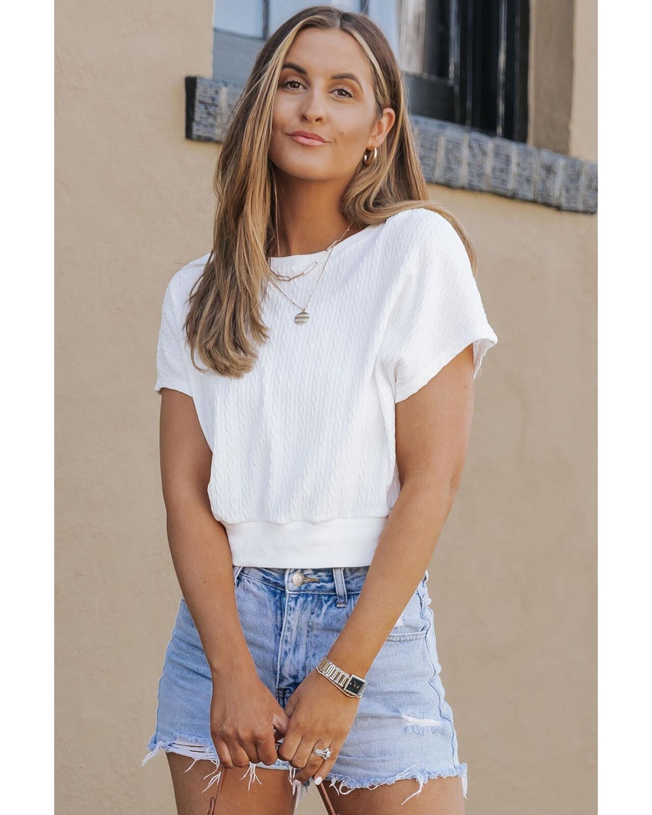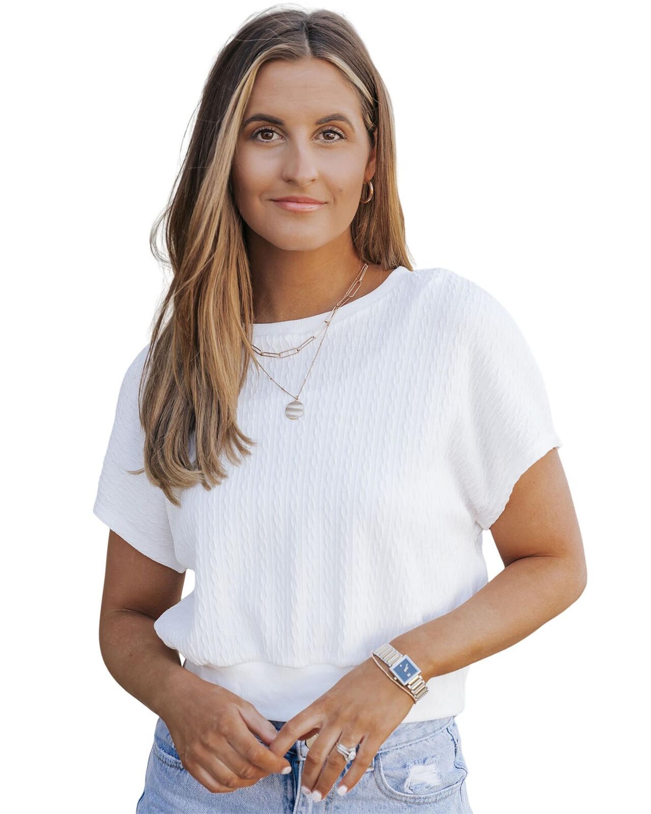 • Luxurious and comfortable Textured Knit Short Sleeve Top for women