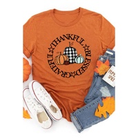 • Stylish and trendy Thankful Blessed Grateful Pumpkin Print Graphic T-Shirt