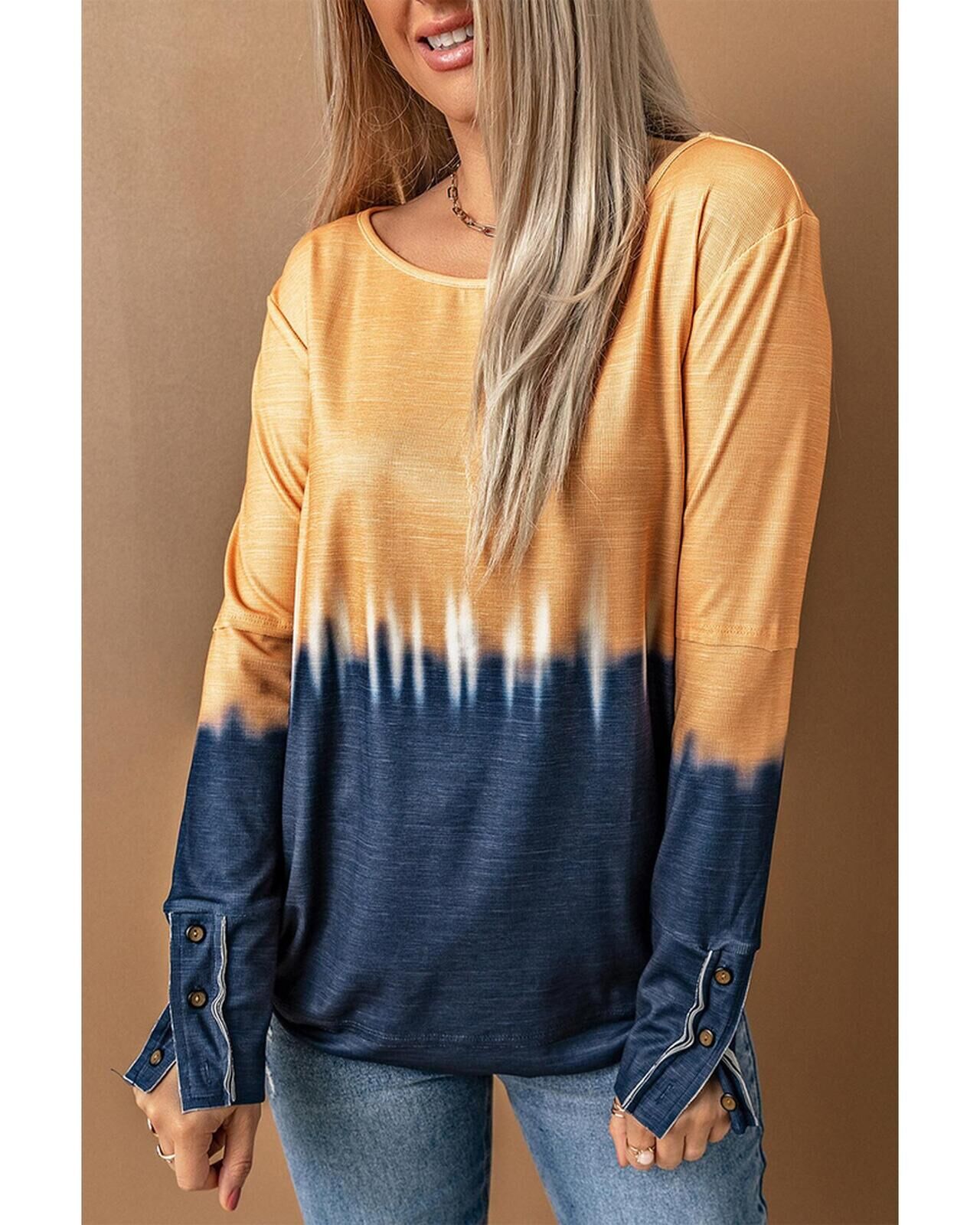 Azura Exchange Tie Dye Color Block Button Cuff Long Sleeve Top