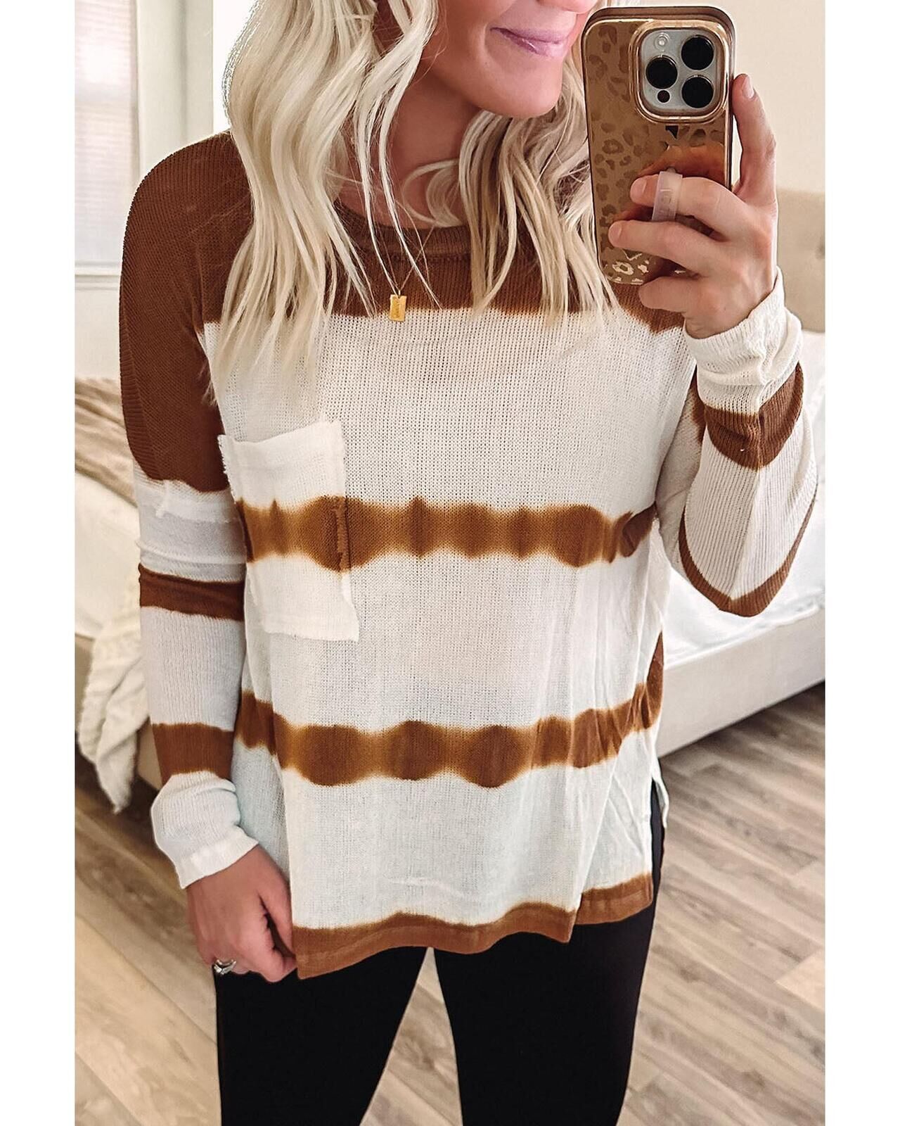 Azura Exchange Tie Dye Striped Loose Knitted Top with Slits