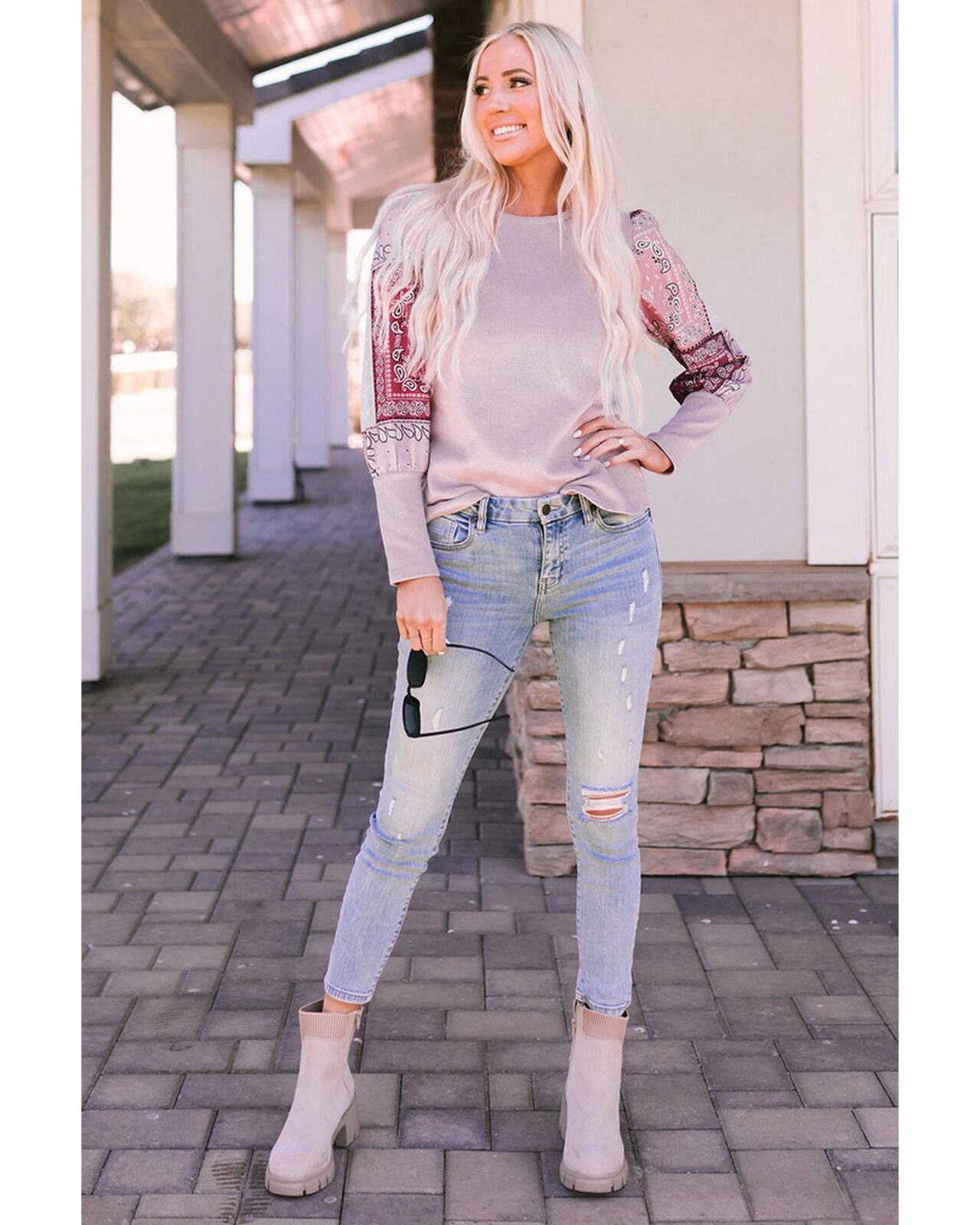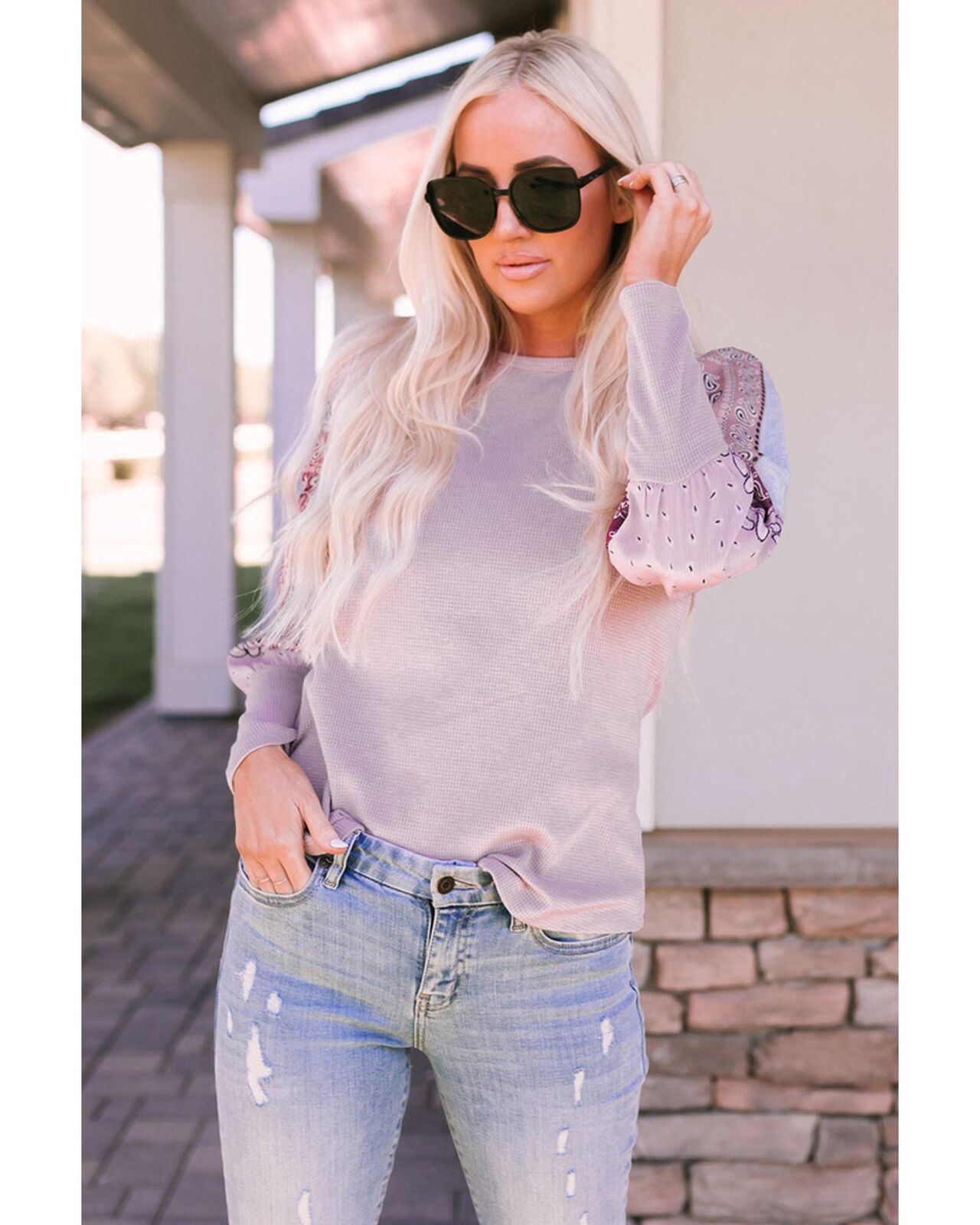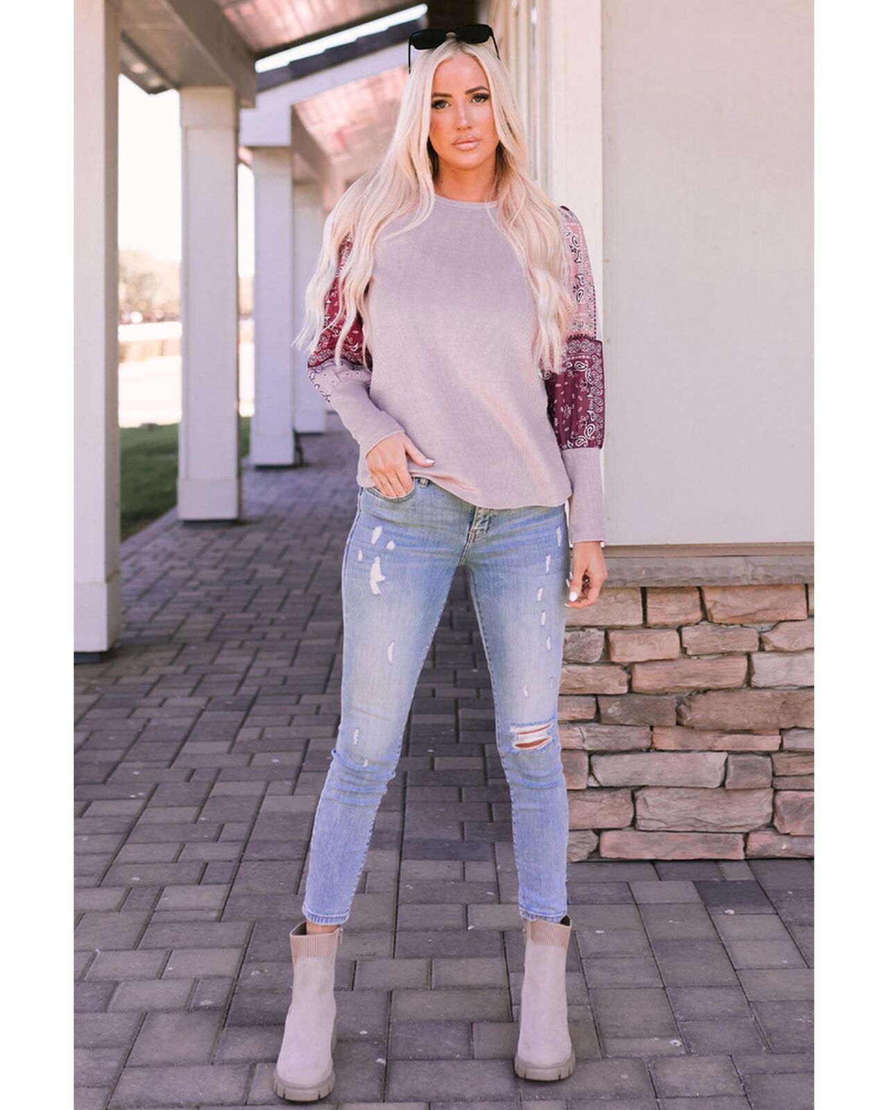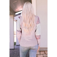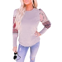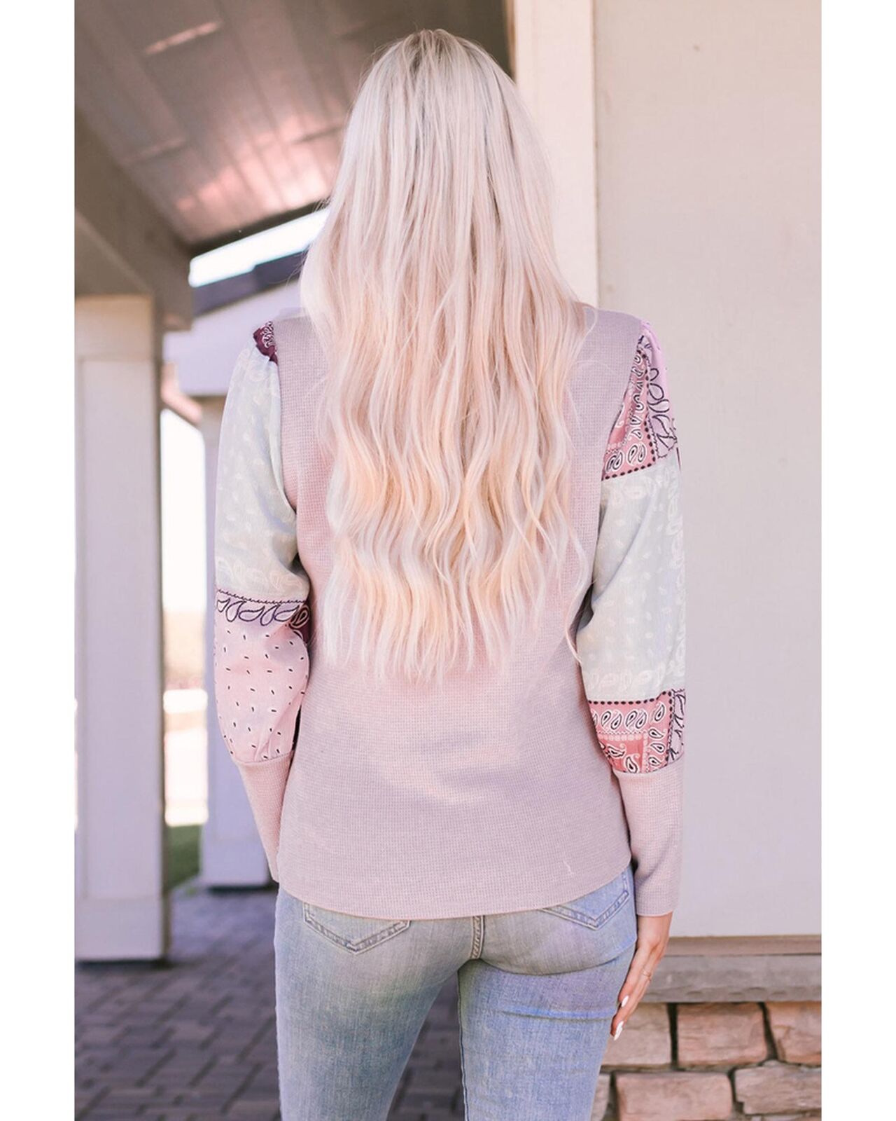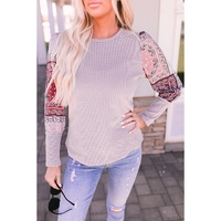 • Stylish and trendy Tribal Pattern Patchwork Waffle Knit Long Sleeve Top
