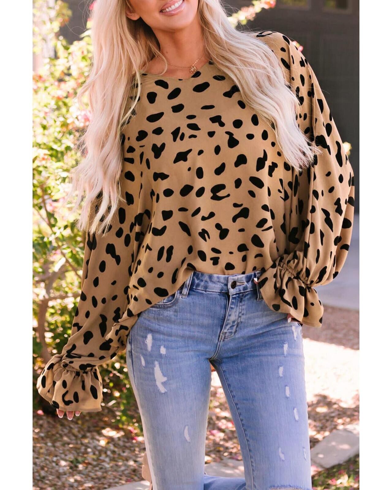 Azura Exchange V Neck Ruffled Cuffs Loose Blouse