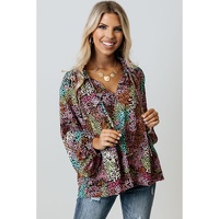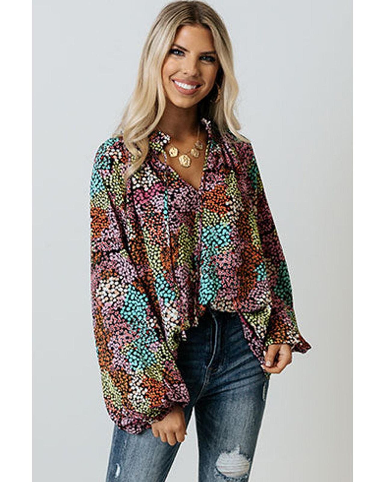 • Vibrant and stylish Multicolor Floral Tie V Neck Puff Sleeve Blouse