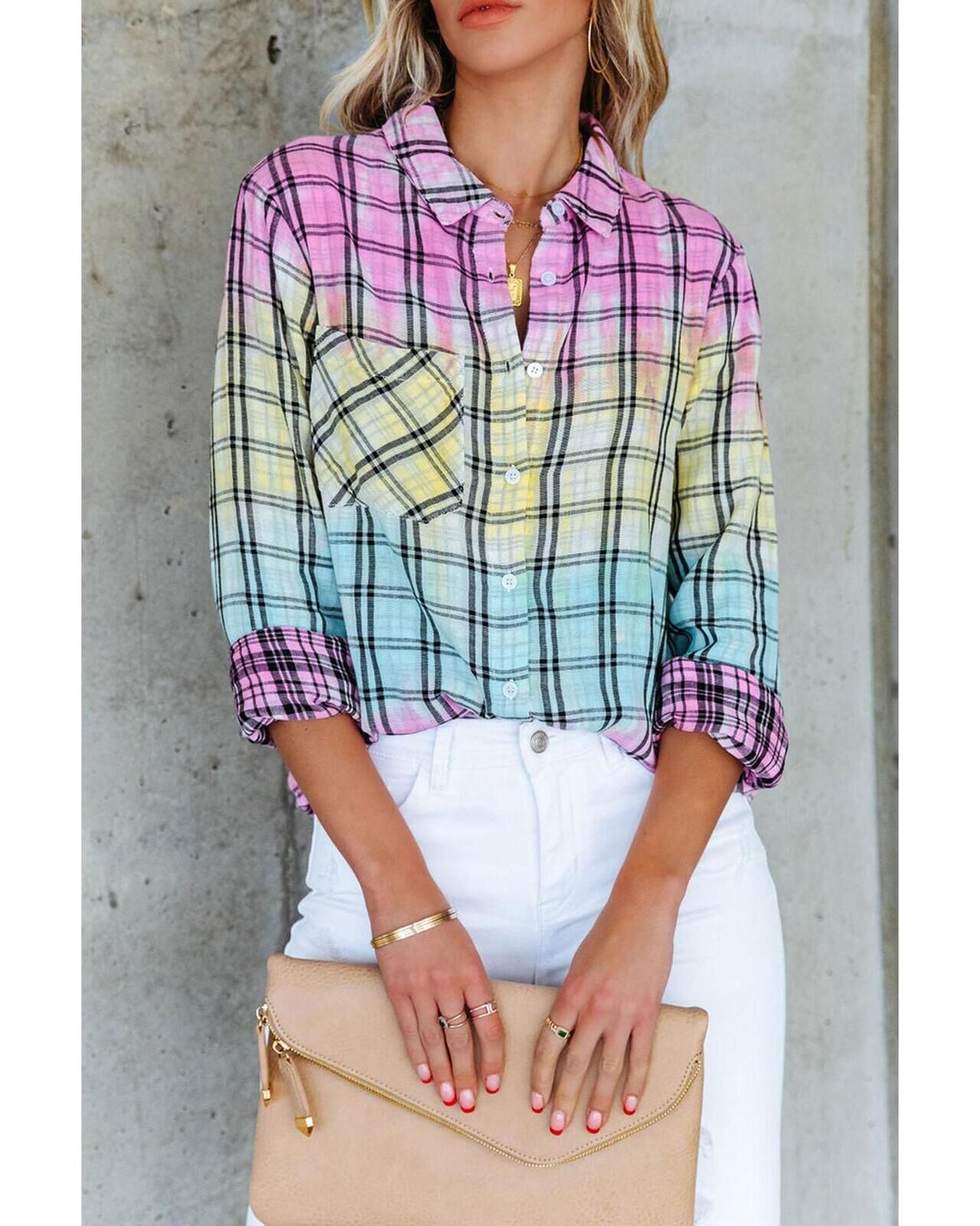 Azura Exchange Vibrant Tie Dye Plaid Button Up Shirt