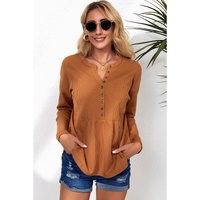 • Stylish and versatile Waffle Knit Half Button Henley Top