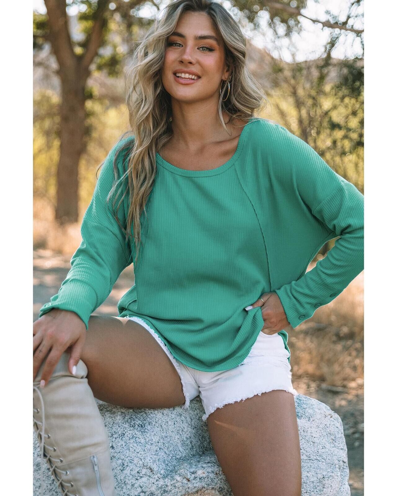 Azura Exchange Waffle Knit Splicing Buttons Top