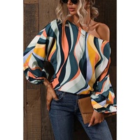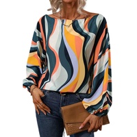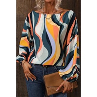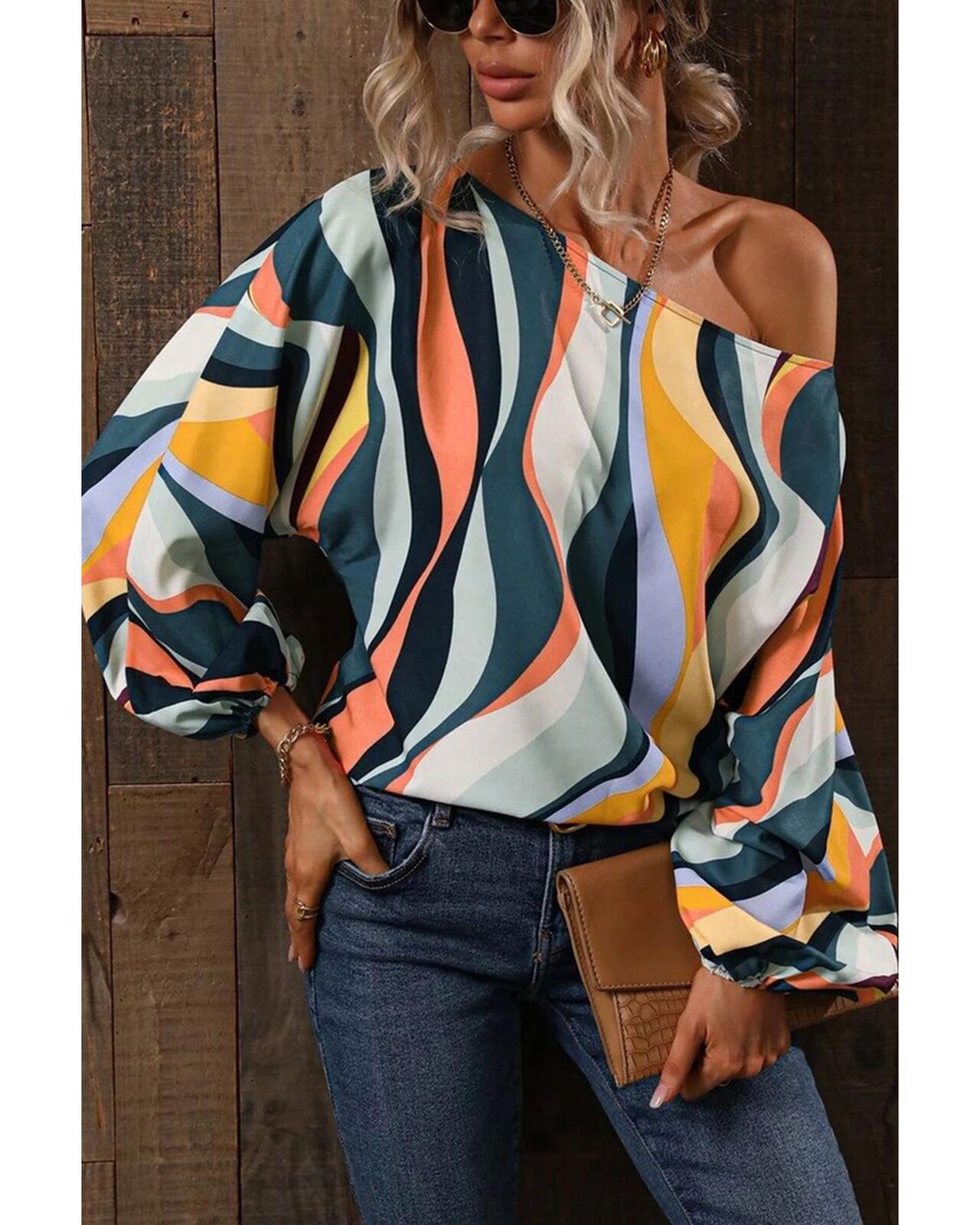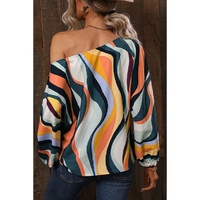 • Stylish and trendy multicolor wavy striped boat neck blouse