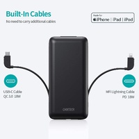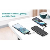 Choetech's power bank with two built-in cables - one MFi-certified PD18W Lightning cable and one QC3.0 18W USB-C cable allows you to charge two devices at the same time, providing enough power for iOS and Android phones and tablets. You don't need to take additional cables when you're on-the-go.