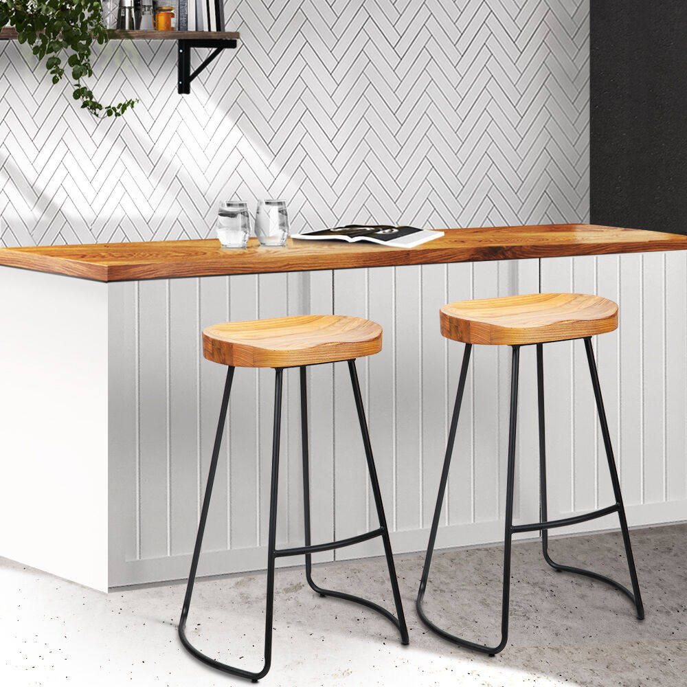 Featuring a stunning vintage look perfect for industrial design lovers, these two stools will bring the industrial revolution to your home. The stools have maximum style with their elegant elm wood seat. Impeccably constructed with heavy duty steel, be assured it's made to the highest standard and will last for a very long time. It's the perfect piece of furniture to create the ultimate industrial dining space.