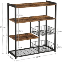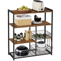 Baker's Rack with 2 Metal Mesh Baskets, Shelves and Hooks, 80 x 35 x 95 cm, Industrial Style, Rustic Brown