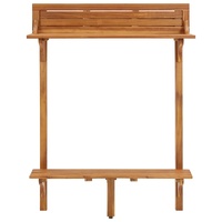 The wooden bar table is a practical and decorative addition to your outdoor living space! This bistro table is made of solid acacia wood, a tropical hardwood, making it stable and durable. Thanks to the solid wood tabletop, this counter table can also be used as a plant stand for displaying your potted plants, herbs and flowers or other outdoor decorations, especially on smaller balconies or patios. It also features the footrest for excellent comfort. This wooden table can even serve as a dining table, a pub table, a balcony table, etc. The metal brackets are included that can be used for fixing the bar table to the balcony rails. Important note: Colours and grains vary from piece to piece, making each piece unique. The delivery is random, ensuring the exclusivity and individuality of your product.