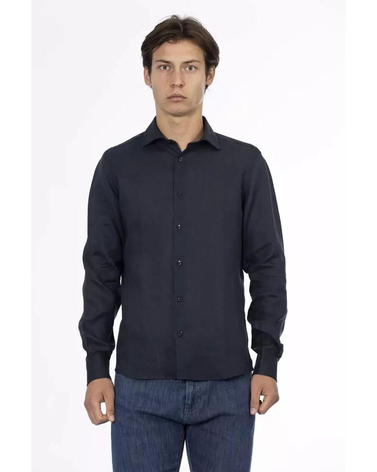 Baldinini Trend Men's Blue Linen Shirt